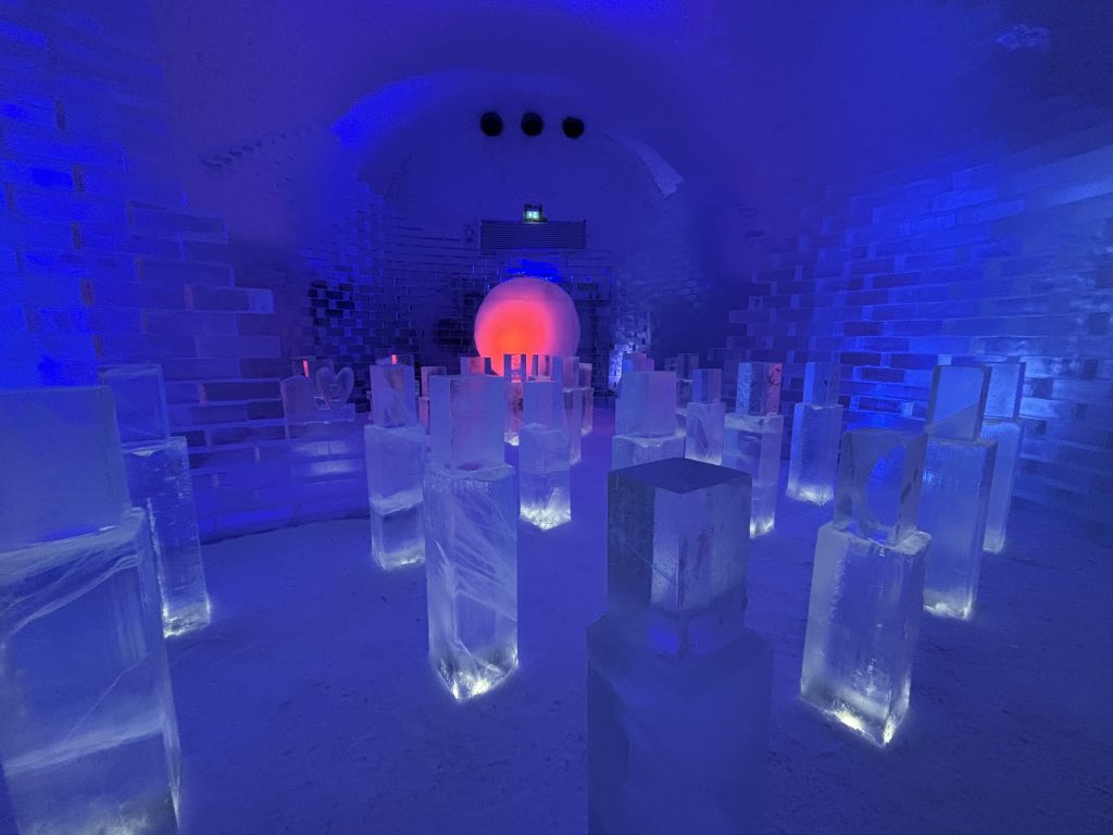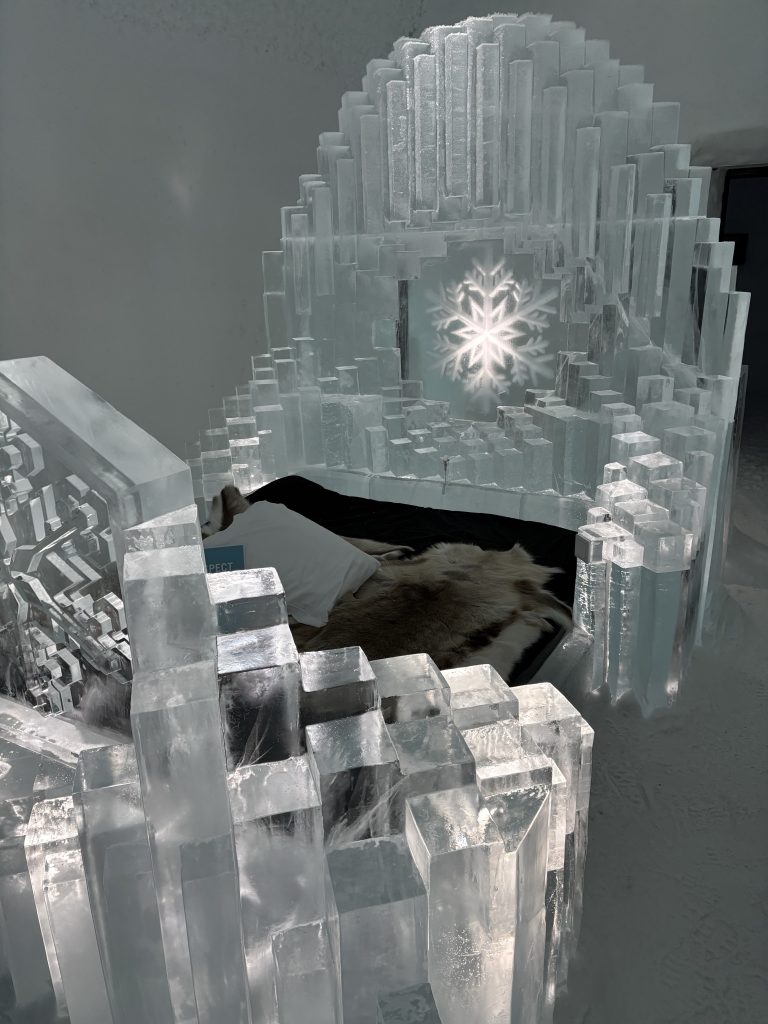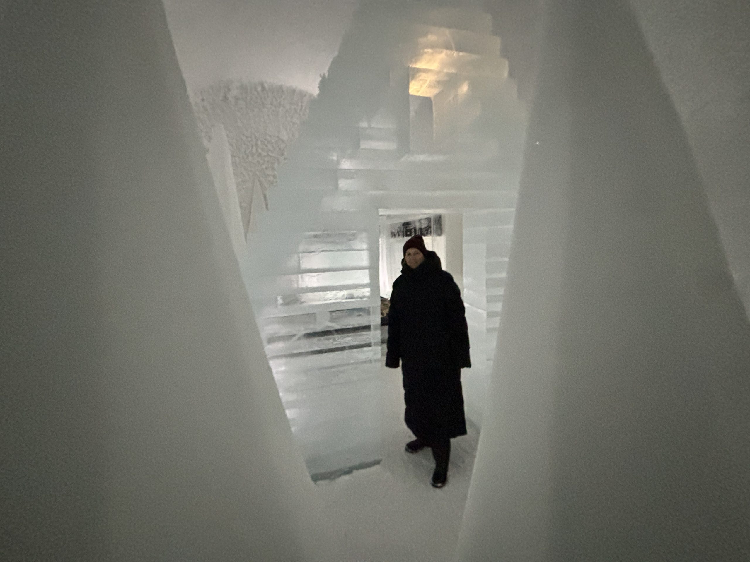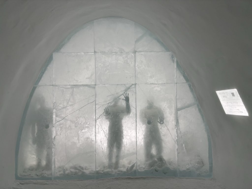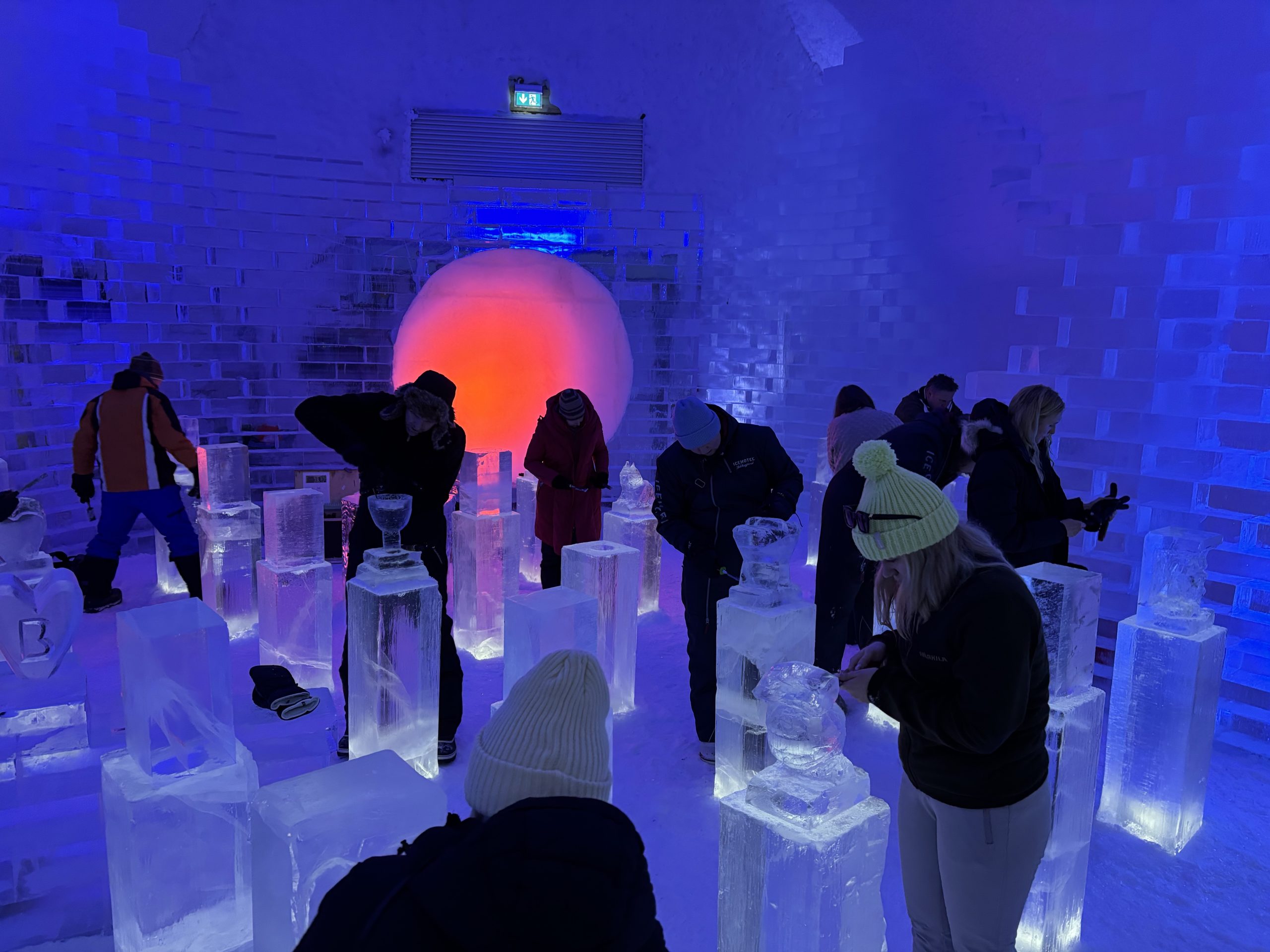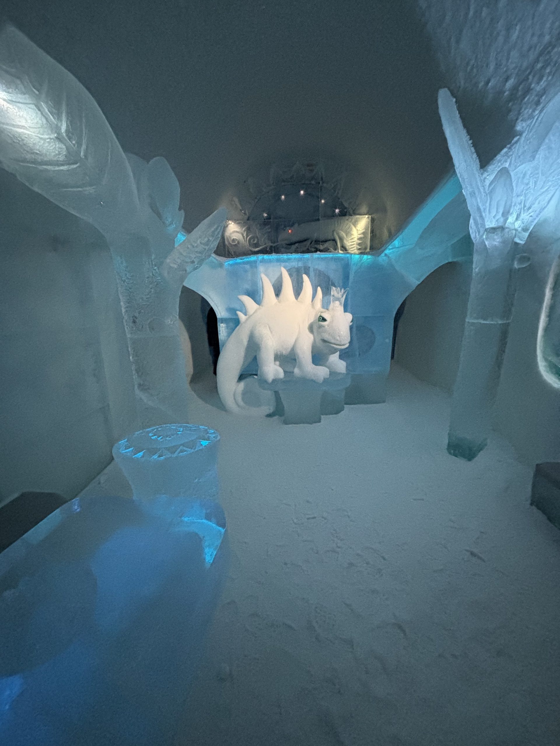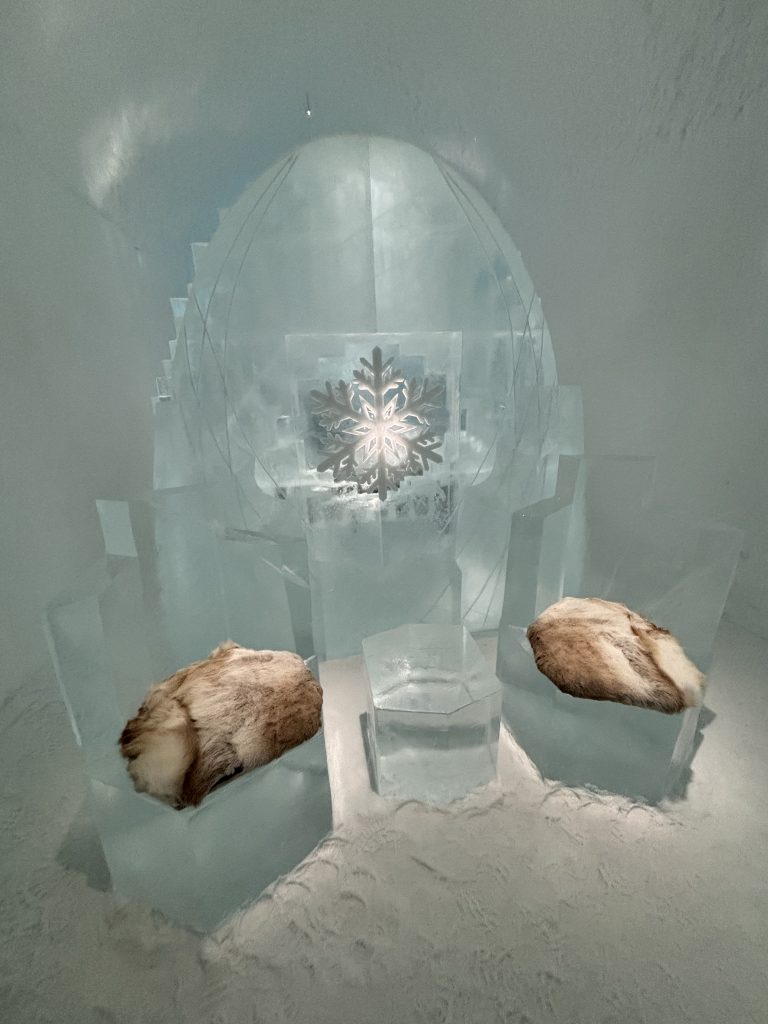 Äntligen fick Linda sin 50-årspresent. En övernattning på ishotellet i Jukkasjärvi med besök på Jokkmokks marknad efteråt. När vi kom upp till Luleå på fredagen var det väl ca 12 minusgrader. Det blev varmare i takt med att vi kom längre upp i landet och när vi nådde Jukkasjärvi var det ca -5 grader. Ruhndvandring och förberedelse inför natten innan vi gick och åt en jättegod måltid. Förrätt var rentartar på innanlår med rostade rotfruktschips, svamp och en god sås till. Huvudrätt var fjällröding med potatis och sedan en god efterrätt. På väg till hotell restaurangen fick vi även se Norrsken. Sedan var det dags att krypa ner och sova. Det var inte världens skönaste sömn eftersom det var obekvämt underlag men man frös inte i sovsäcken iallafall. Inne i rummen var det ca -5 till -8 grader. Dagen efter blev det bastu och sedan frukost. Rummen skulle man ha lämnat redan 8.30 så det blev ingen lång sovmorgon precis. Efter att ha checkat ut vid 11 tiden så åkte vi mot Jokkmokk med tankning i Kiruna, genomfart genom Gällivare och sedan lite kraftverk på vägen till Jokkmokk.