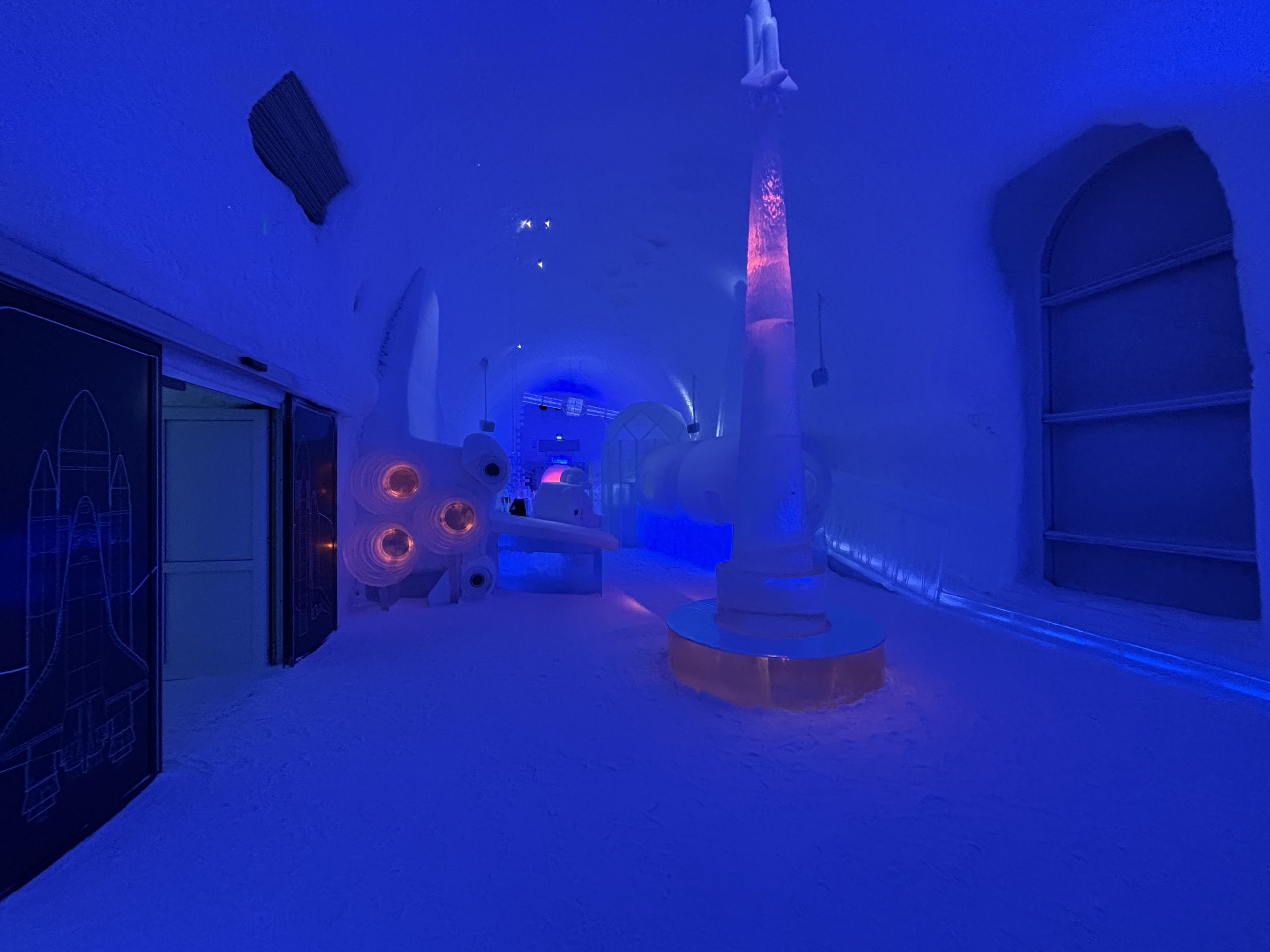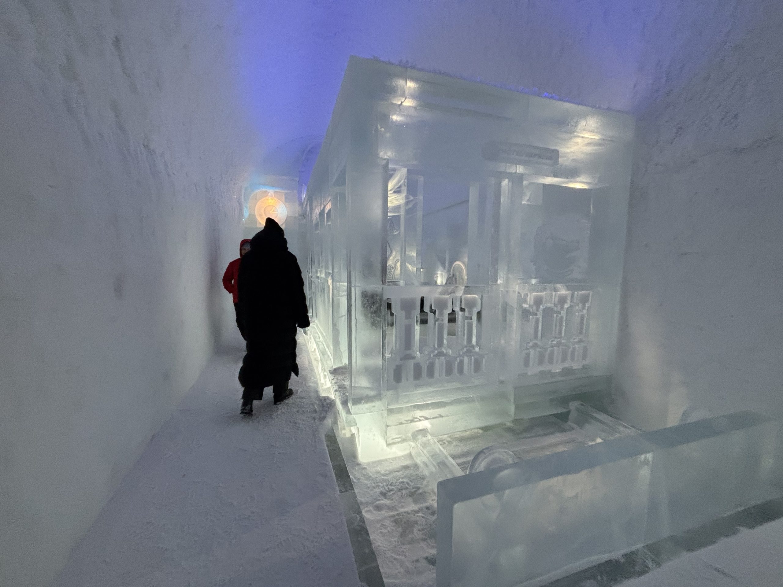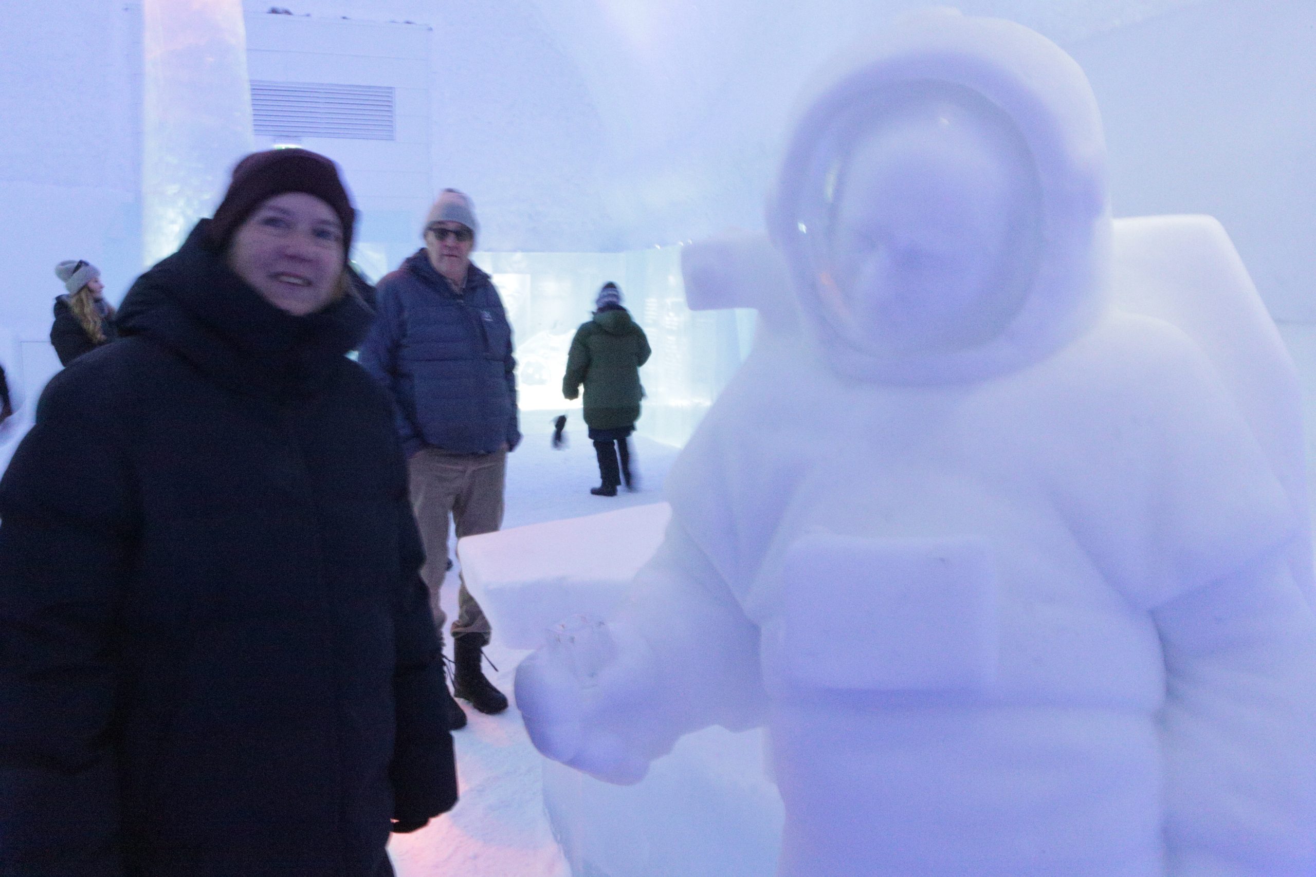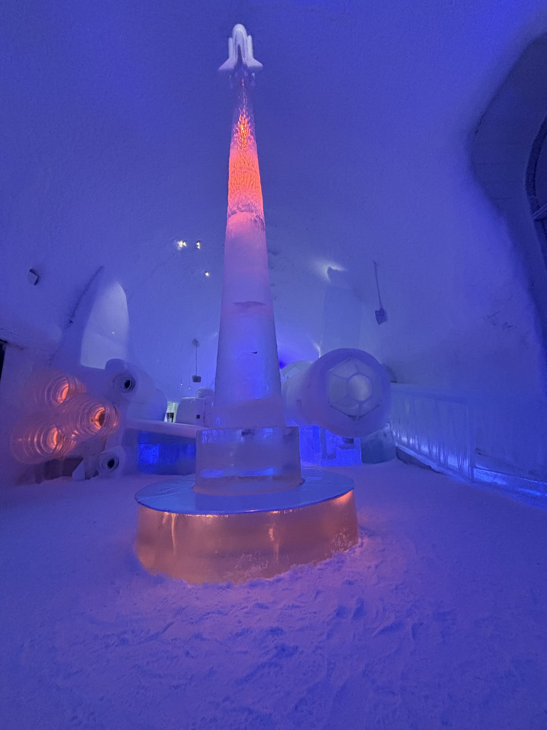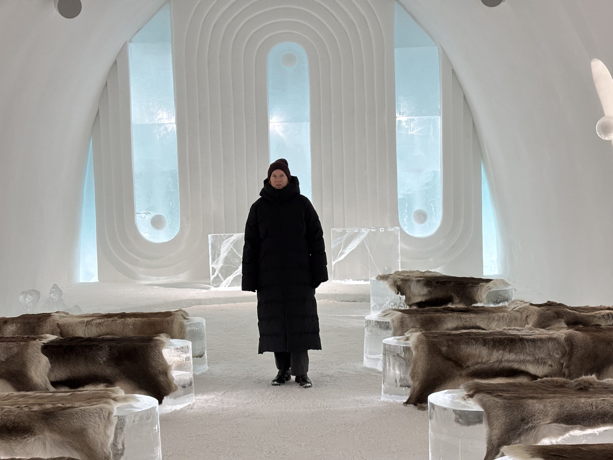 Äntligen fick Linda sin 50-årspresent. En övernattning på ishotellet i Jukkasjärvi med besök på Jokkmokks marknad efteråt. När vi kom upp till Luleå på fredagen var det väl ca 12 minusgrader. Det blev varmare i takt med att vi kom längre upp i landet och när vi nådde Jukkasjärvi var det ca -5 grader. Ruhndvandring och förberedelse inför natten innan vi gick och åt en jättegod måltid. Förrätt var rentartar på innanlår med rostade rotfruktschips, svamp och en god sås till. Huvudrätt var fjällröding med potatis och sedan en god efterrätt. På väg till hotell restaurangen fick vi även se Norrsken. Sedan var det dags att krypa ner och sova. Det var inte världens skönaste sömn eftersom det var obekvämt underlag men man frös inte i sovsäcken iallafall. Inne i rummen var det ca -5 till -8 grader. Dagen efter blev det bastu och sedan frukost. Rummen skulle man ha lämnat redan 8.30 så det blev ingen lång sovmorgon precis. Efter att ha checkat ut vid 11 tiden så åkte vi mot Jokkmokk med tankning i Kiruna, genomfart genom Gällivare och sedan lite kraftverk på vägen till Jokkmokk.