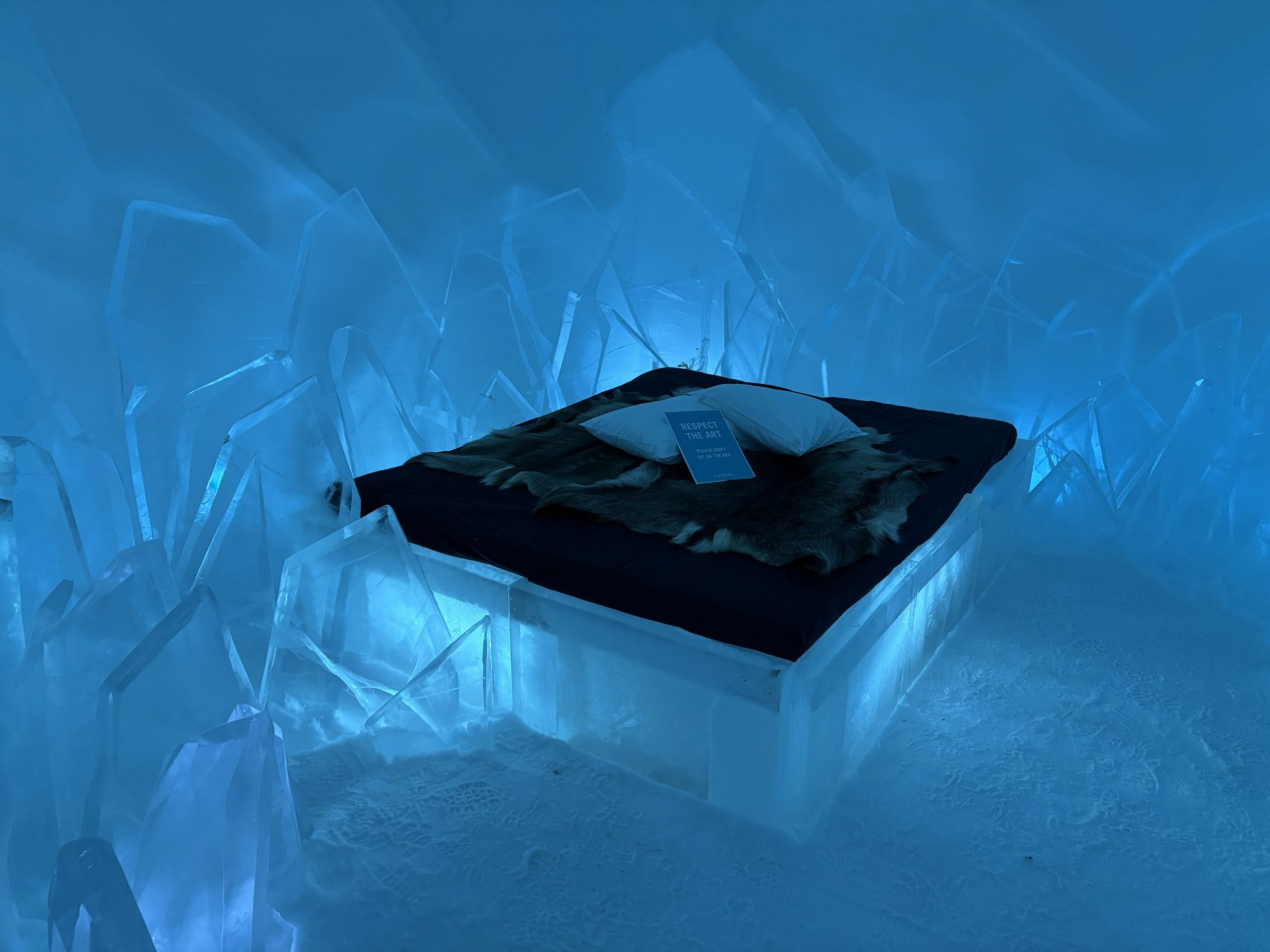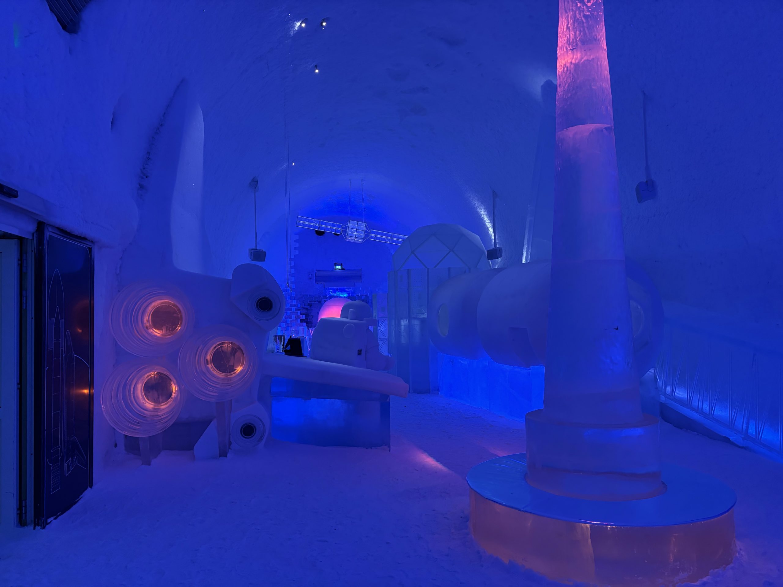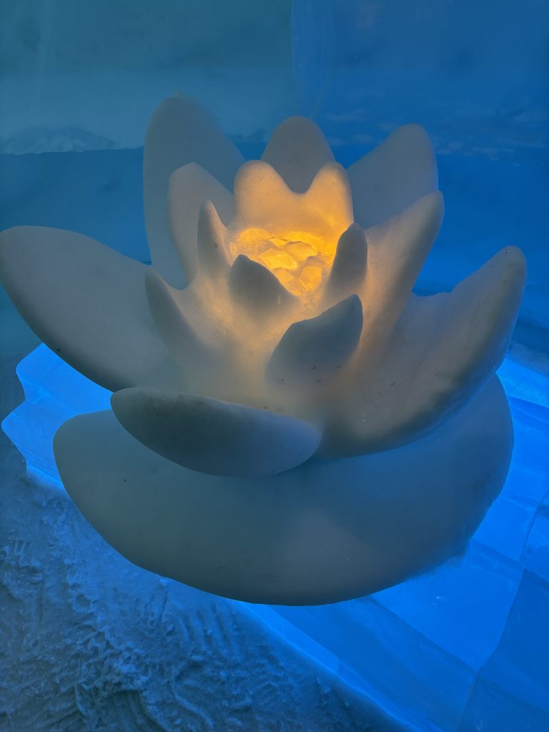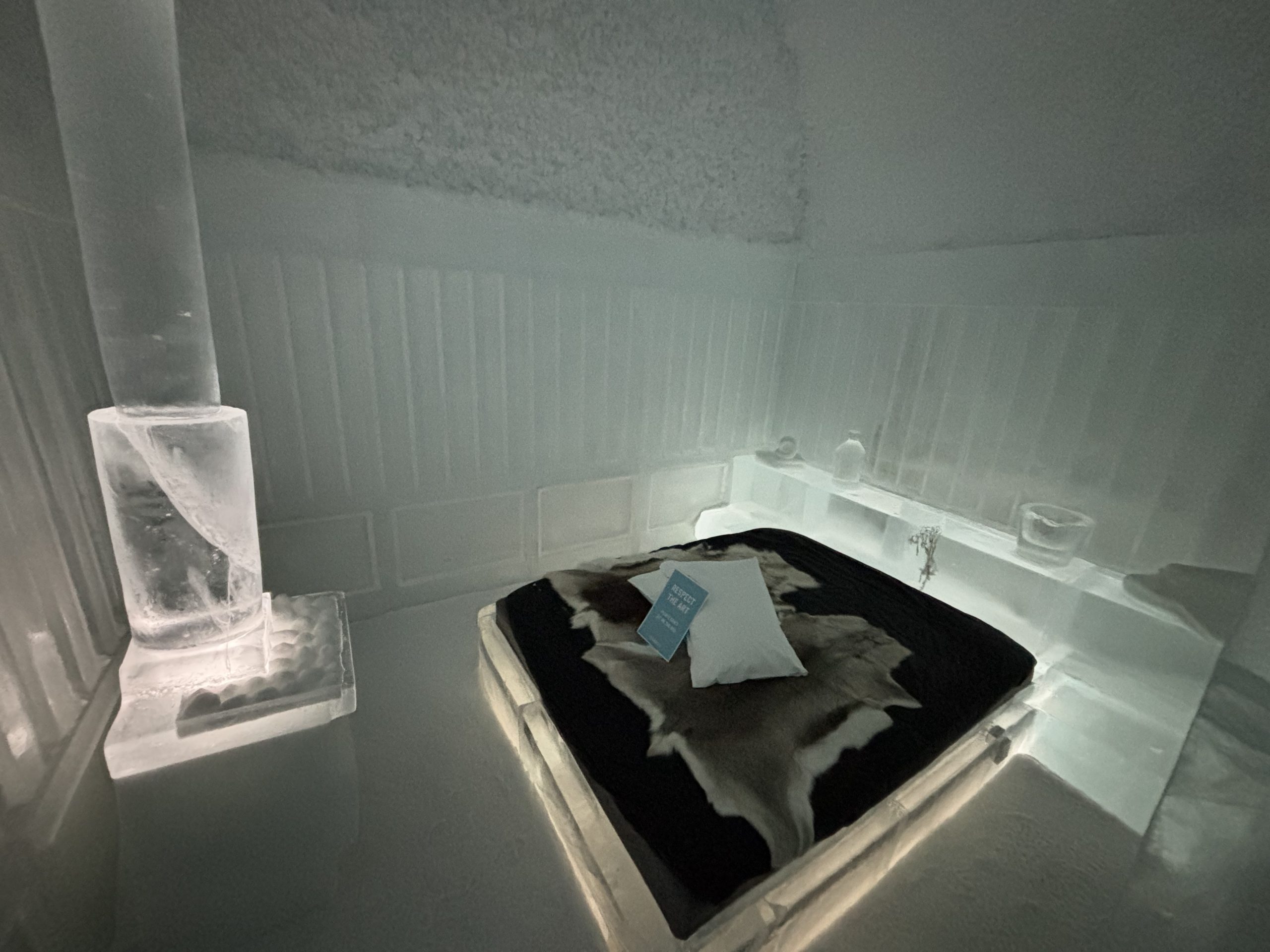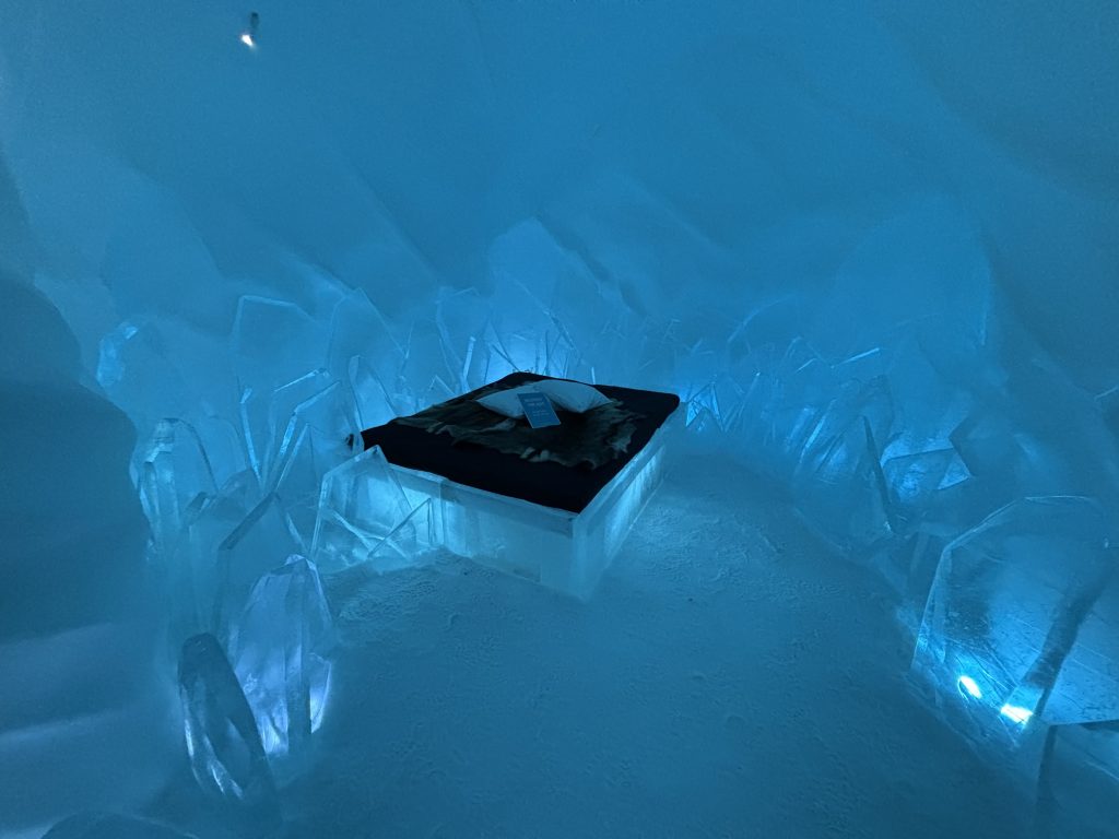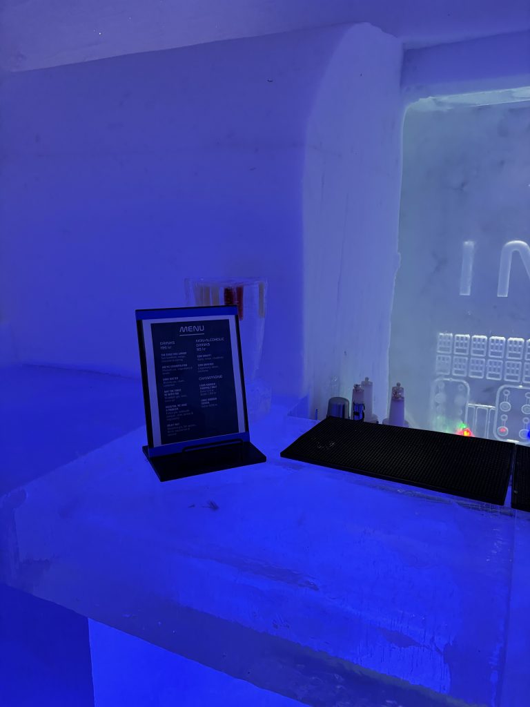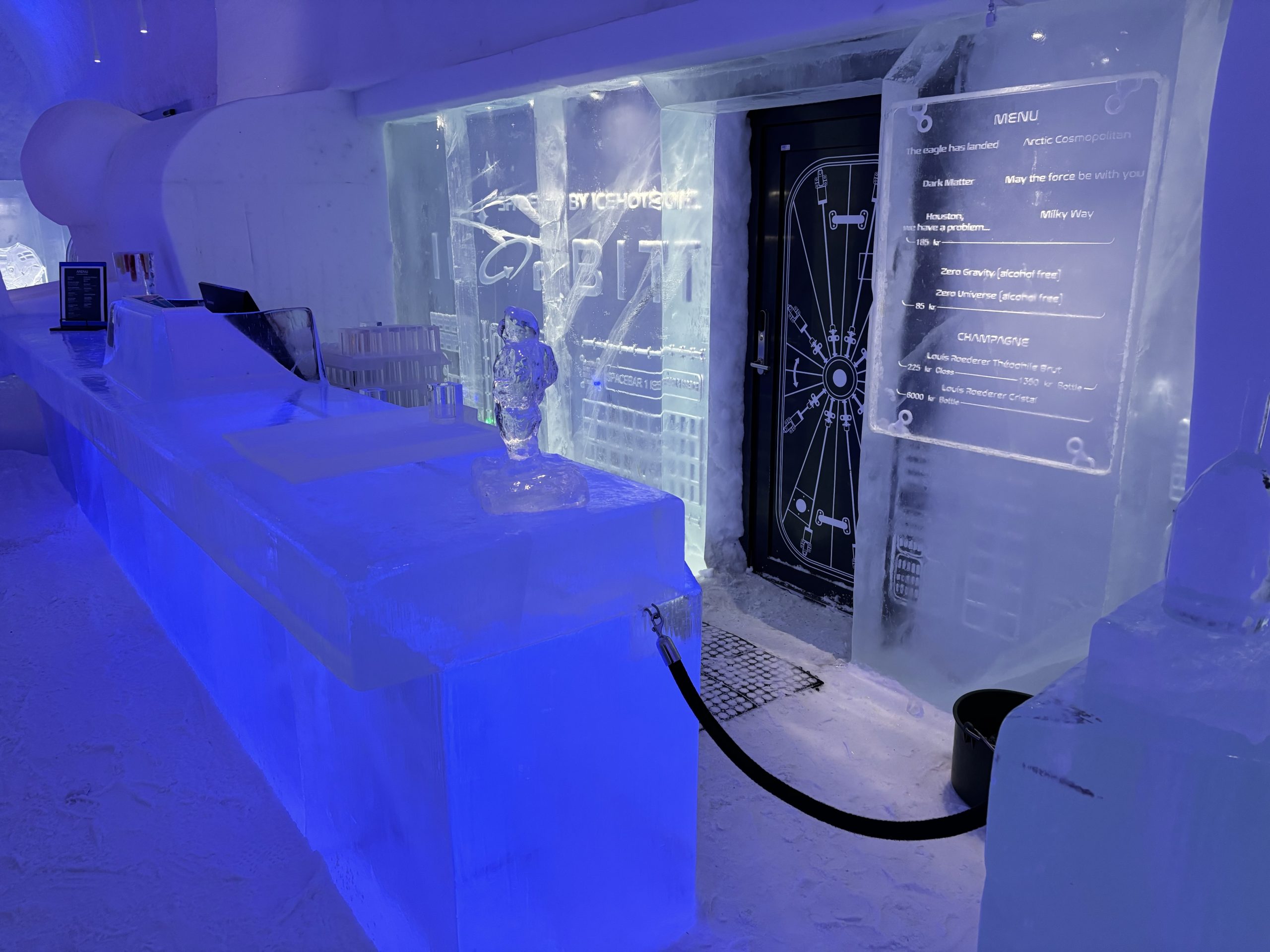 Äntligen fick Linda sin 50-årspresent. En övernattning på ishotellet i Jukkasjärvi med besök på Jokkmokks marknad efteråt. När vi kom upp till Luleå på fredagen var det väl ca 12 minusgrader. Det blev varmare i takt med att vi kom längre upp i landet och när vi nådde Jukkasjärvi var det ca -5 grader. Ruhndvandring och förberedelse inför natten innan vi gick och åt en jättegod måltid. Förrätt var rentartar på innanlår med rostade rotfruktschips, svamp och en god sås till. Huvudrätt var fjällröding med potatis och sedan en god efterrätt. På väg till hotell restaurangen fick vi även se Norrsken. Sedan var det dags att krypa ner och sova. Det var inte världens skönaste sömn eftersom det var obekvämt underlag men man frös inte i sovsäcken iallafall. Inne i rummen var det ca -5 till -8 grader. Dagen efter blev det bastu och sedan frukost. Rummen skulle man ha lämnat redan 8.30 så det blev ingen lång sovmorgon precis. Efter att ha checkat ut vid 11 tiden så åkte vi mot Jokkmokk med tankning i Kiruna, genomfart genom Gällivare och sedan lite kraftverk på vägen till Jokkmokk.