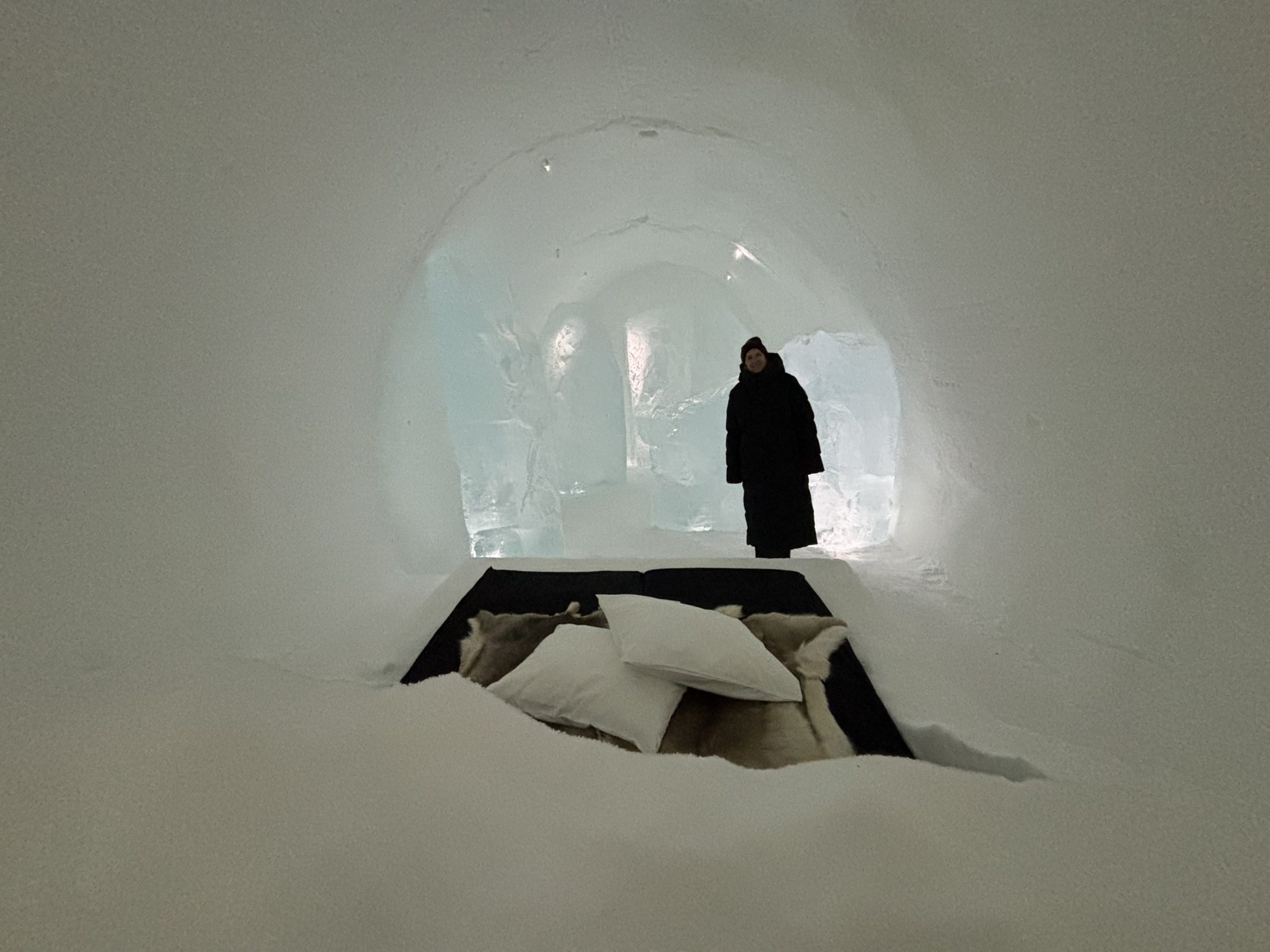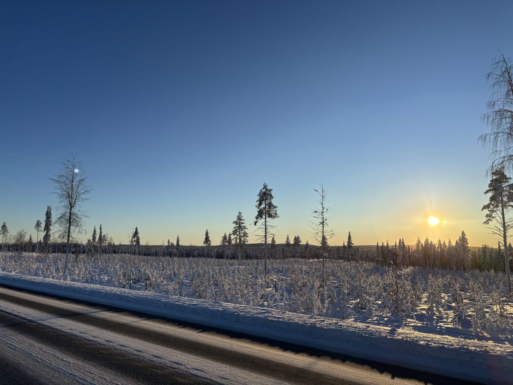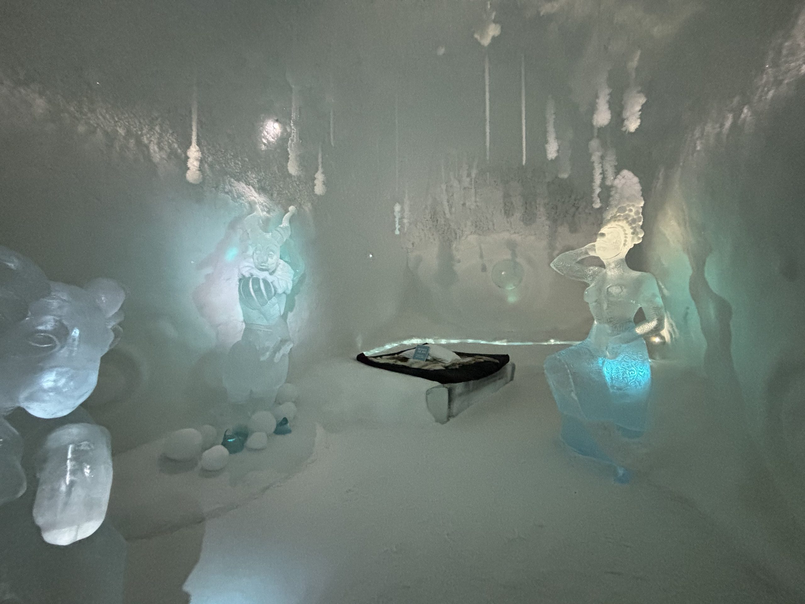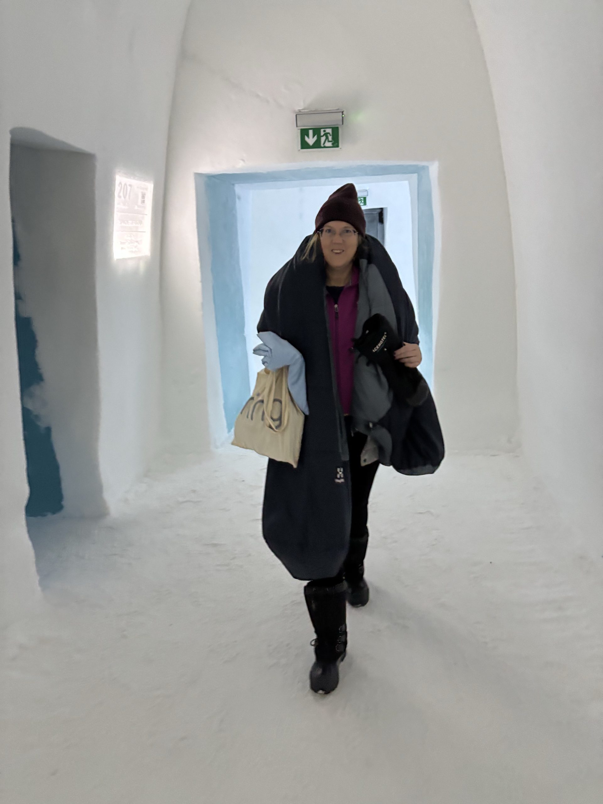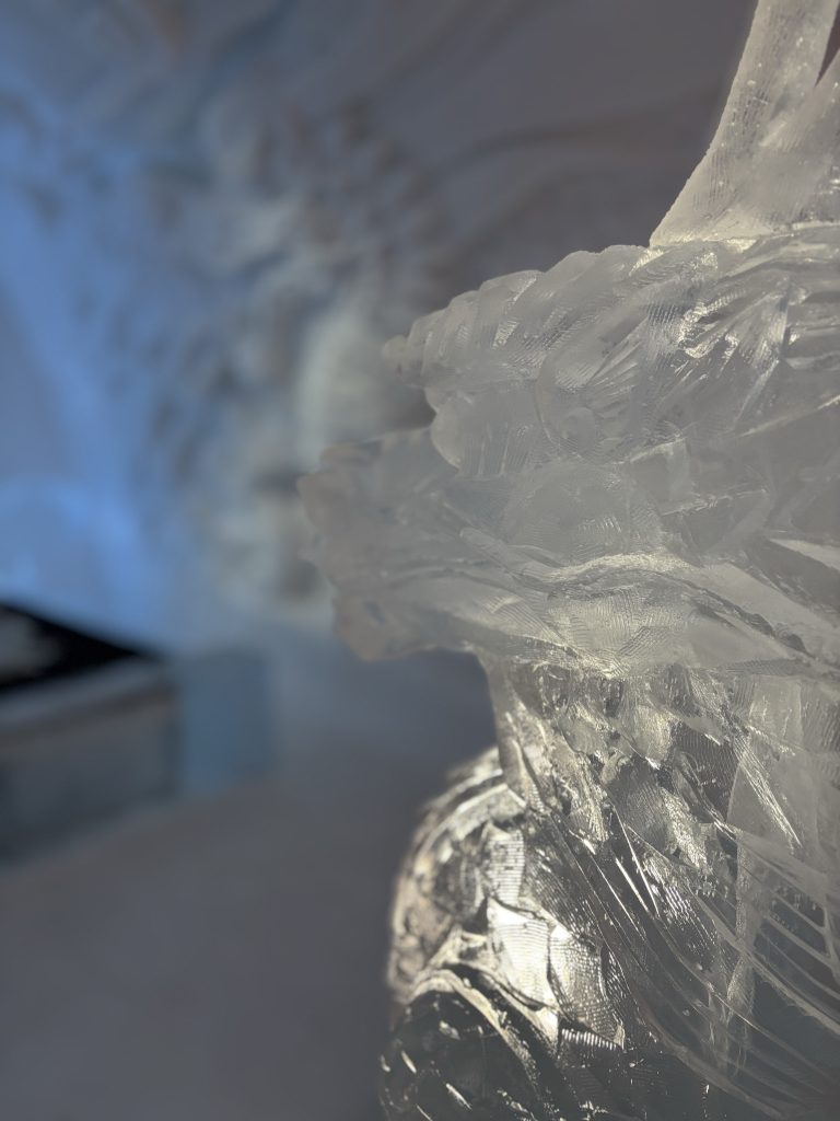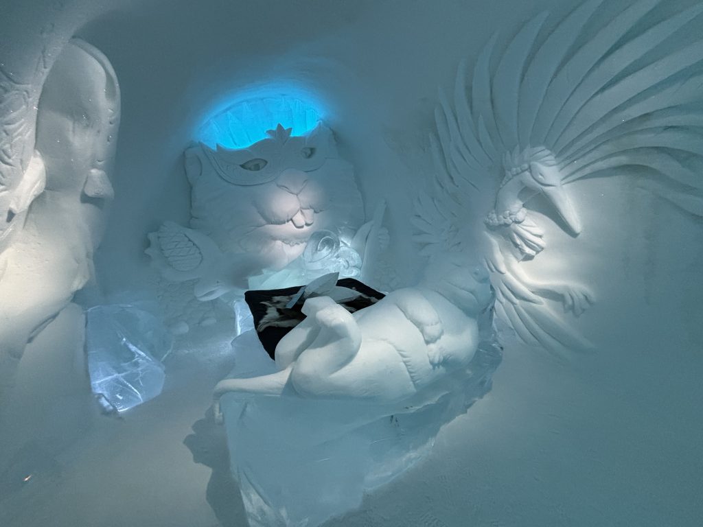 Äntligen fick Linda sin 50-årspresent. En övernattning på ishotellet i Jukkasjärvi med besök på Jokkmokks marknad efteråt. När vi kom upp till Luleå på fredagen var det väl ca 12 minusgrader. Det blev varmare i takt med att vi kom längre upp i landet och när vi nådde Jukkasjärvi var det ca -5 grader. Ruhndvandring och förberedelse inför natten innan vi gick och åt en jättegod måltid. Förrätt var rentartar på innanlår med rostade rotfruktschips, svamp och en god sås till. Huvudrätt var fjällröding med potatis och sedan en god efterrätt. På väg till hotell restaurangen fick vi även se Norrsken. Sedan var det dags att krypa ner och sova. Det var inte världens skönaste sömn eftersom det var obekvämt underlag men man frös inte i sovsäcken iallafall. Inne i rummen var det ca -5 till -8 grader. Dagen efter blev det bastu och sedan frukost. Rummen skulle man ha lämnat redan 8.30 så det blev ingen lång sovmorgon precis. Efter att ha checkat ut vid 11 tiden så åkte vi mot Jokkmokk med tankning i Kiruna, genomfart genom Gällivare och sedan lite kraftverk på vägen till Jokkmokk.