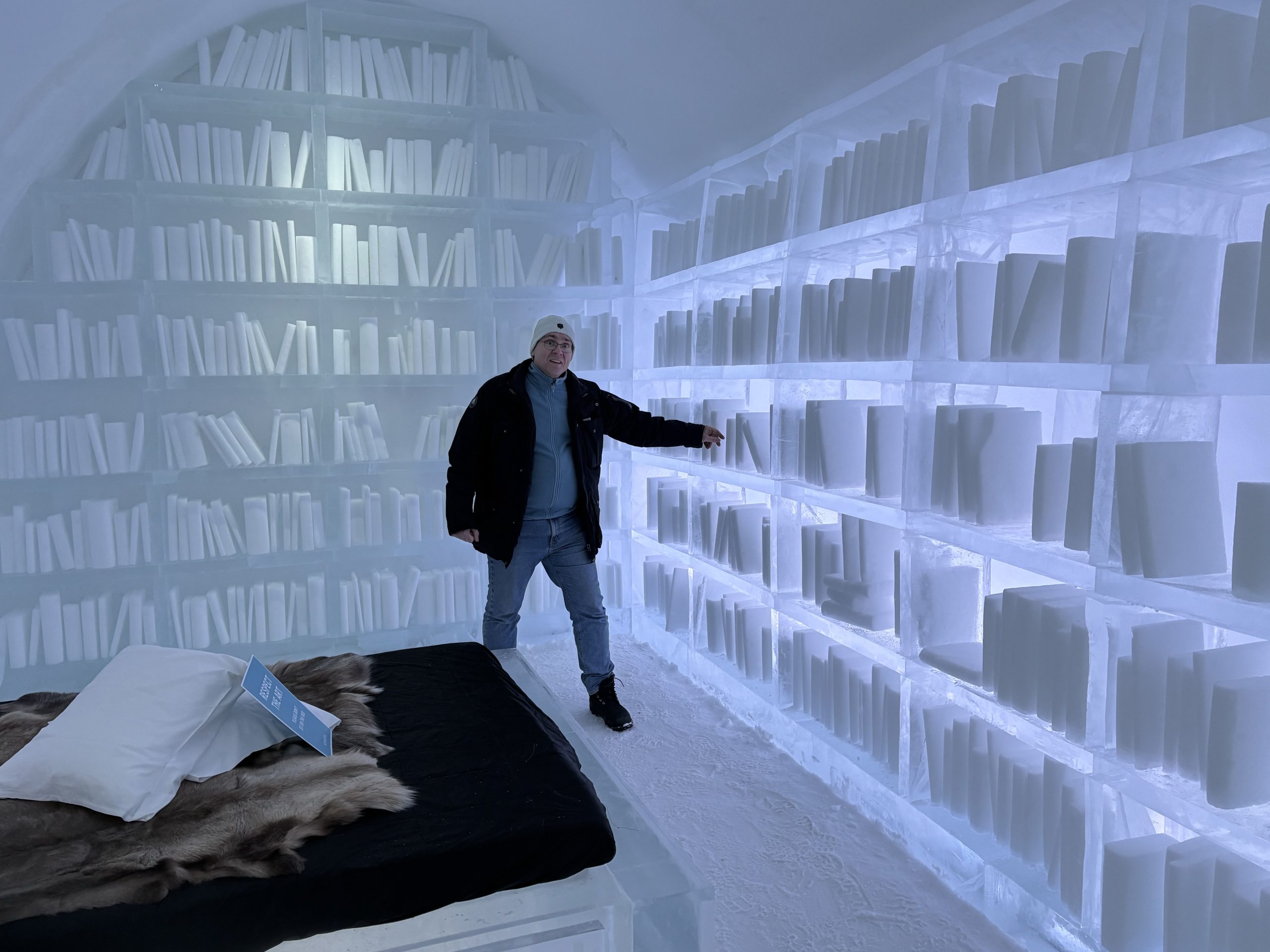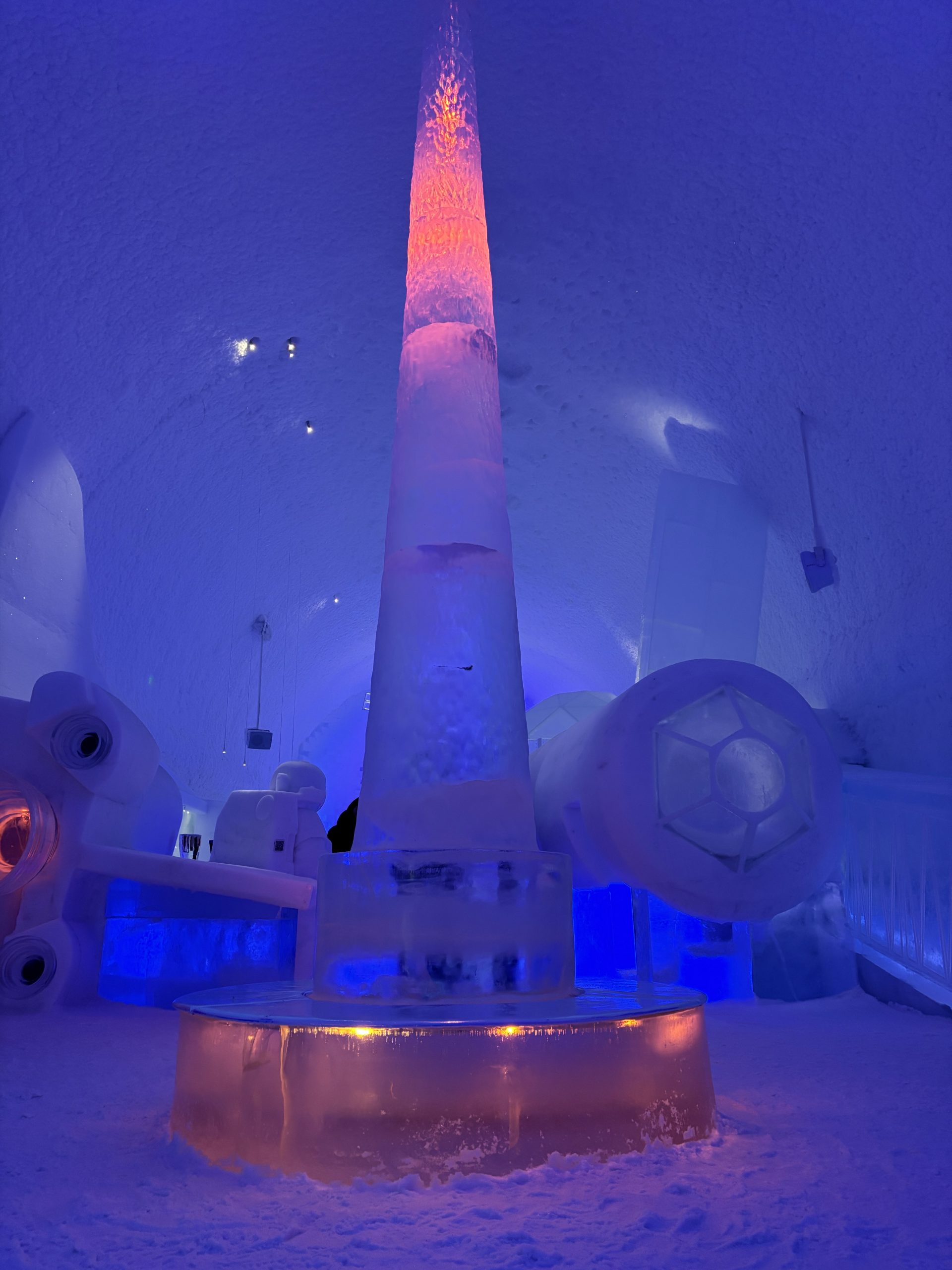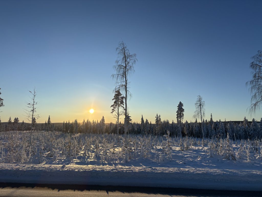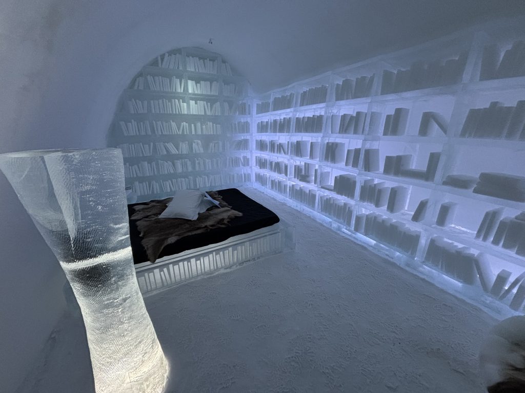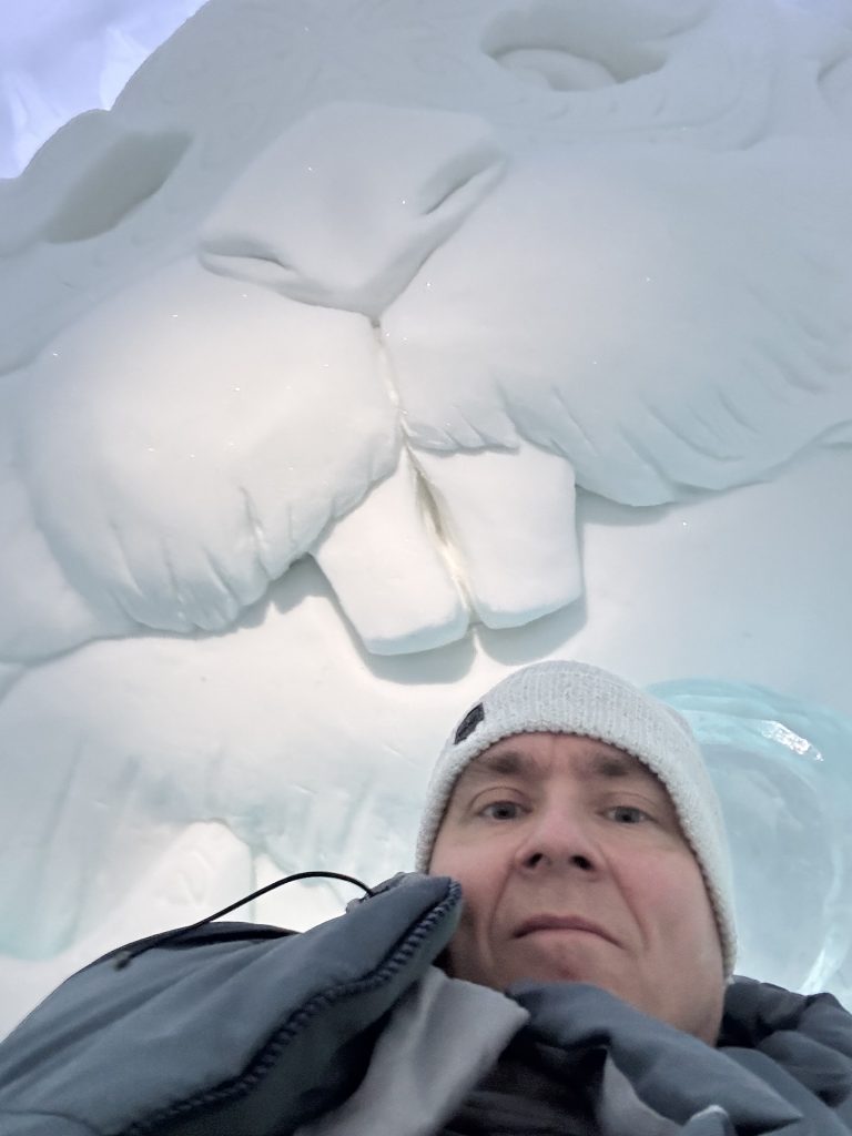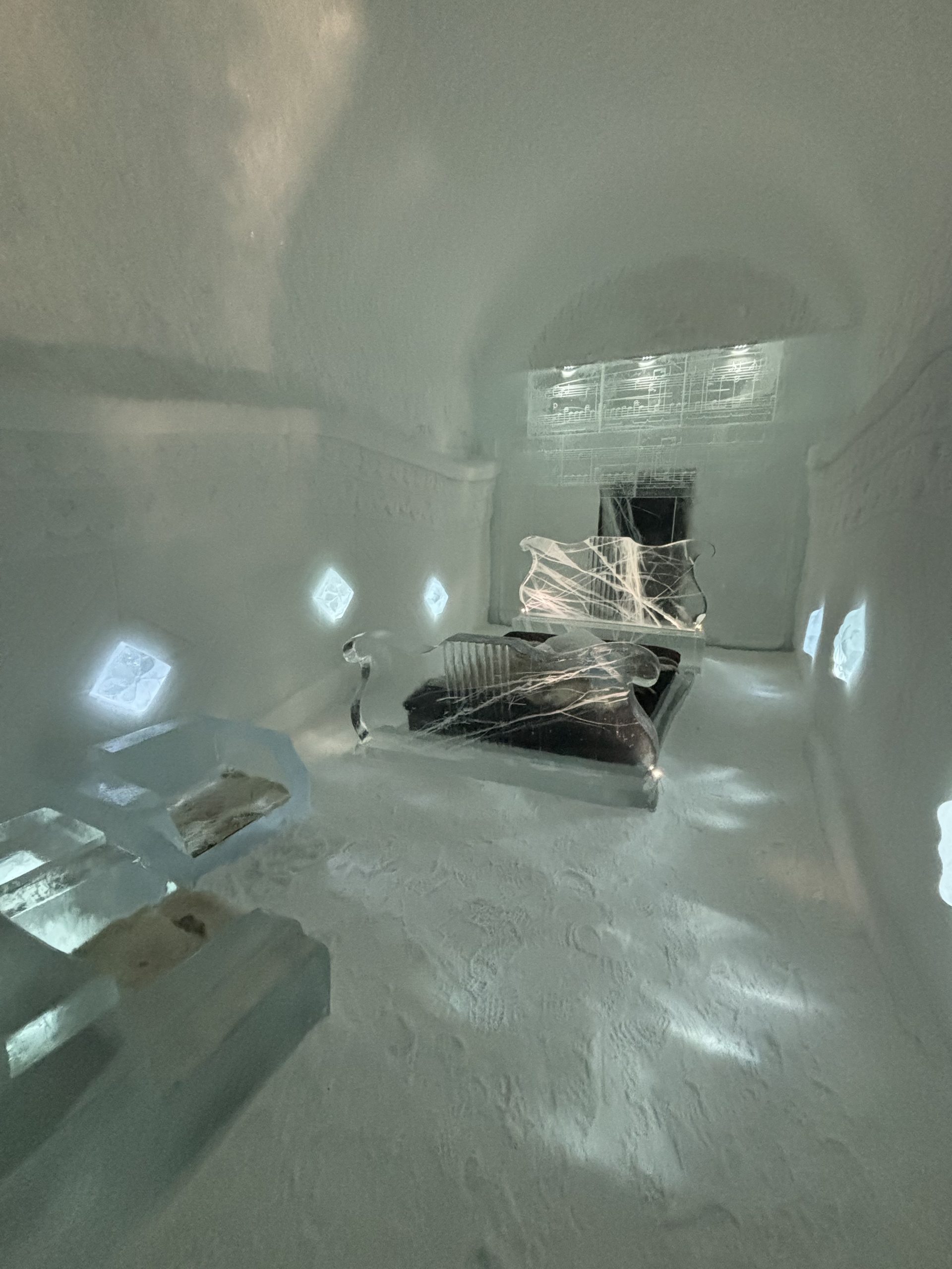 Äntligen fick Linda sin 50-årspresent. En övernattning på ishotellet i Jukkasjärvi med besök på Jokkmokks marknad efteråt. När vi kom upp till Luleå på fredagen var det väl ca 12 minusgrader. Det blev varmare i takt med att vi kom längre upp i landet och när vi nådde Jukkasjärvi var det ca -5 grader. Ruhndvandring och förberedelse inför natten innan vi gick och åt en jättegod måltid. Förrätt var rentartar på innanlår med rostade rotfruktschips, svamp och en god sås till. Huvudrätt var fjällröding med potatis och sedan en god efterrätt. På väg till hotell restaurangen fick vi även se Norrsken. Sedan var det dags att krypa ner och sova. Det var inte världens skönaste sömn eftersom det var obekvämt underlag men man frös inte i sovsäcken iallafall. Inne i rummen var det ca -5 till -8 grader. Dagen efter blev det bastu och sedan frukost. Rummen skulle man ha lämnat redan 8.30 så det blev ingen lång sovmorgon precis. Efter att ha checkat ut vid 11 tiden så åkte vi mot Jokkmokk med tankning i Kiruna, genomfart genom Gällivare och sedan lite kraftverk på vägen till Jokkmokk.