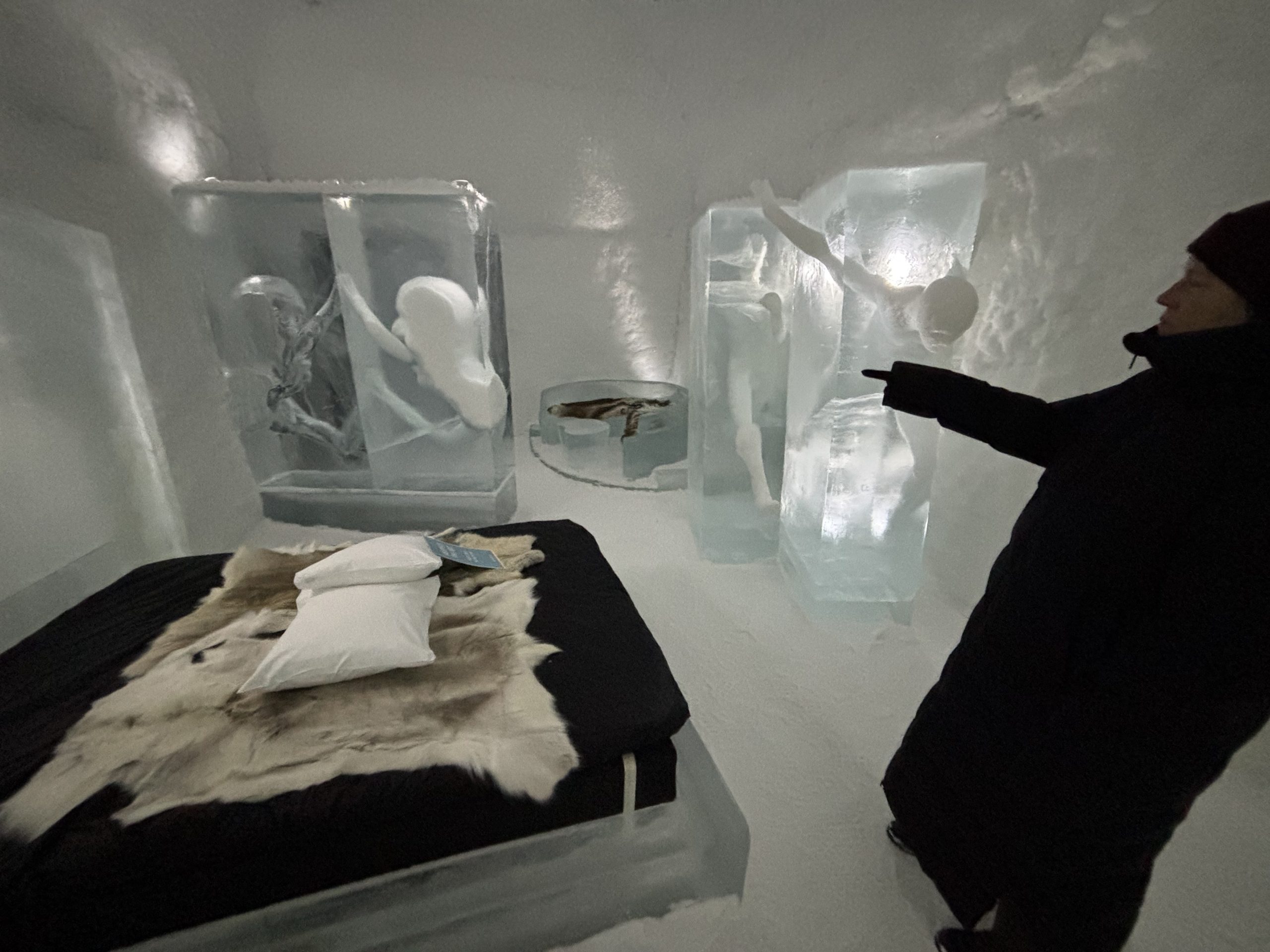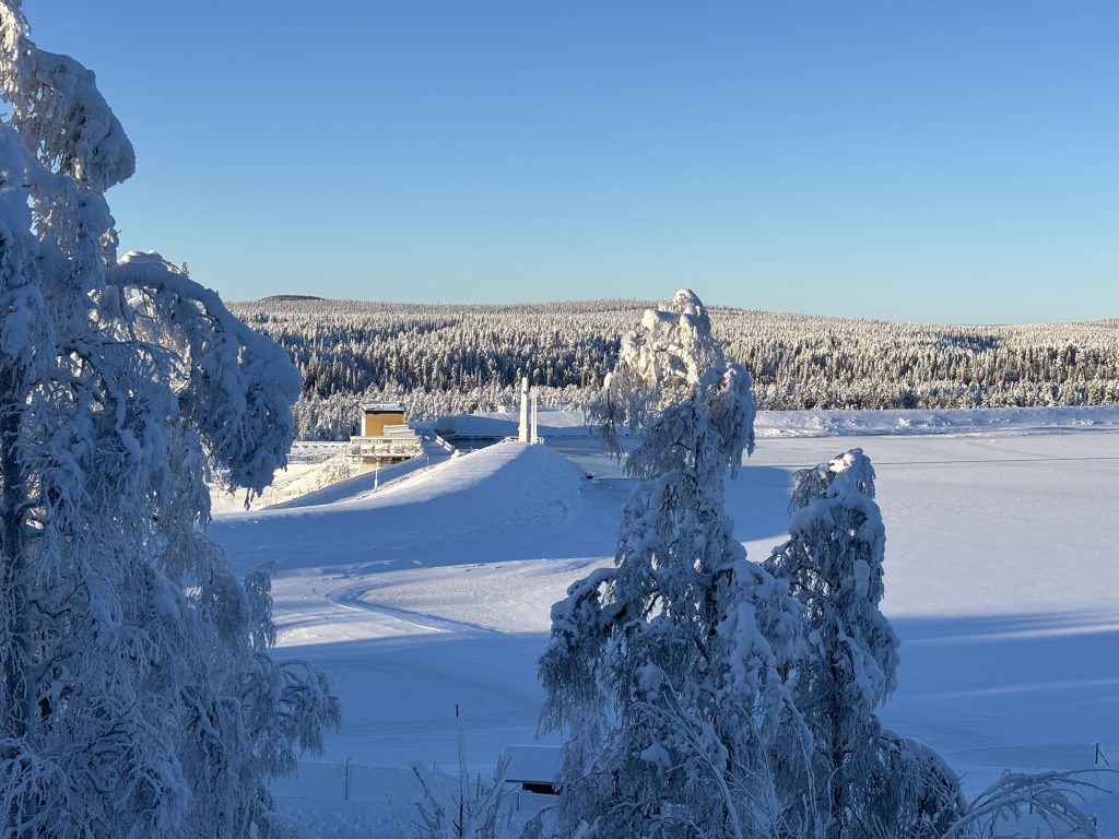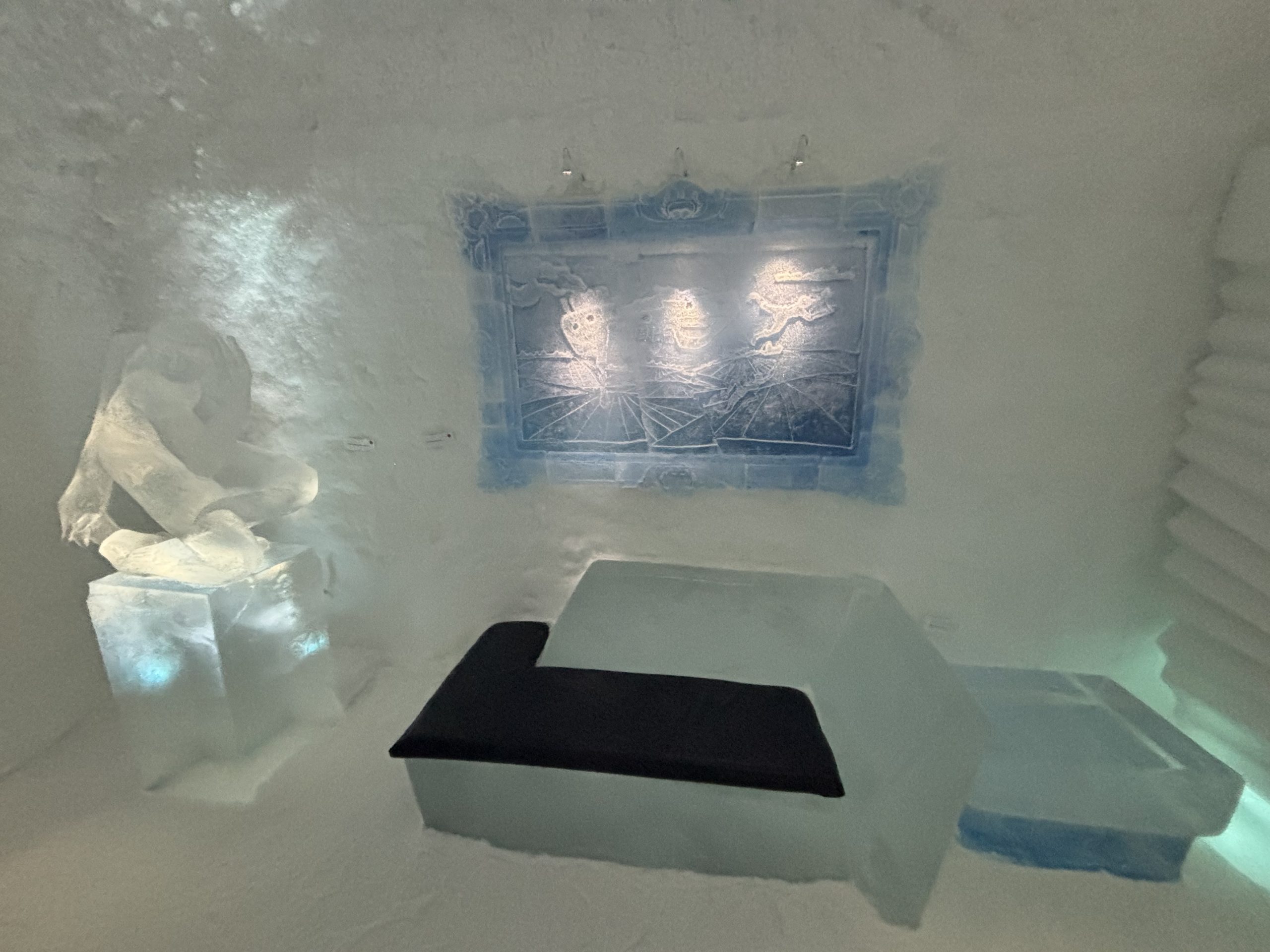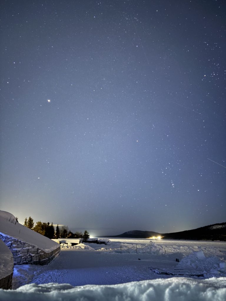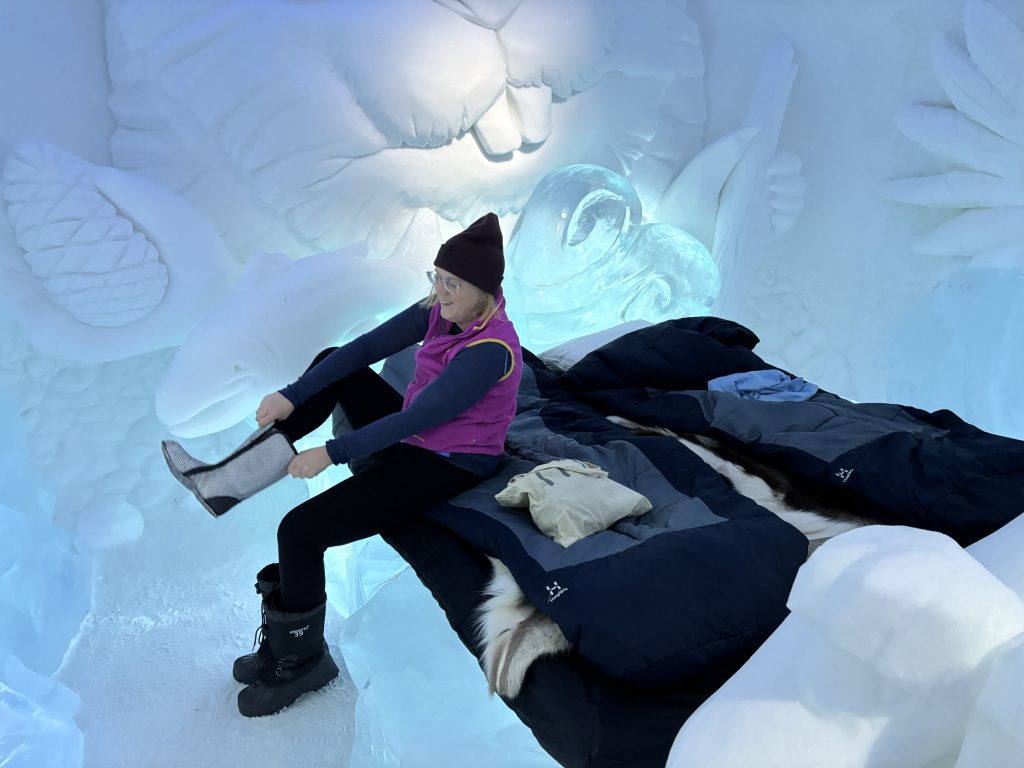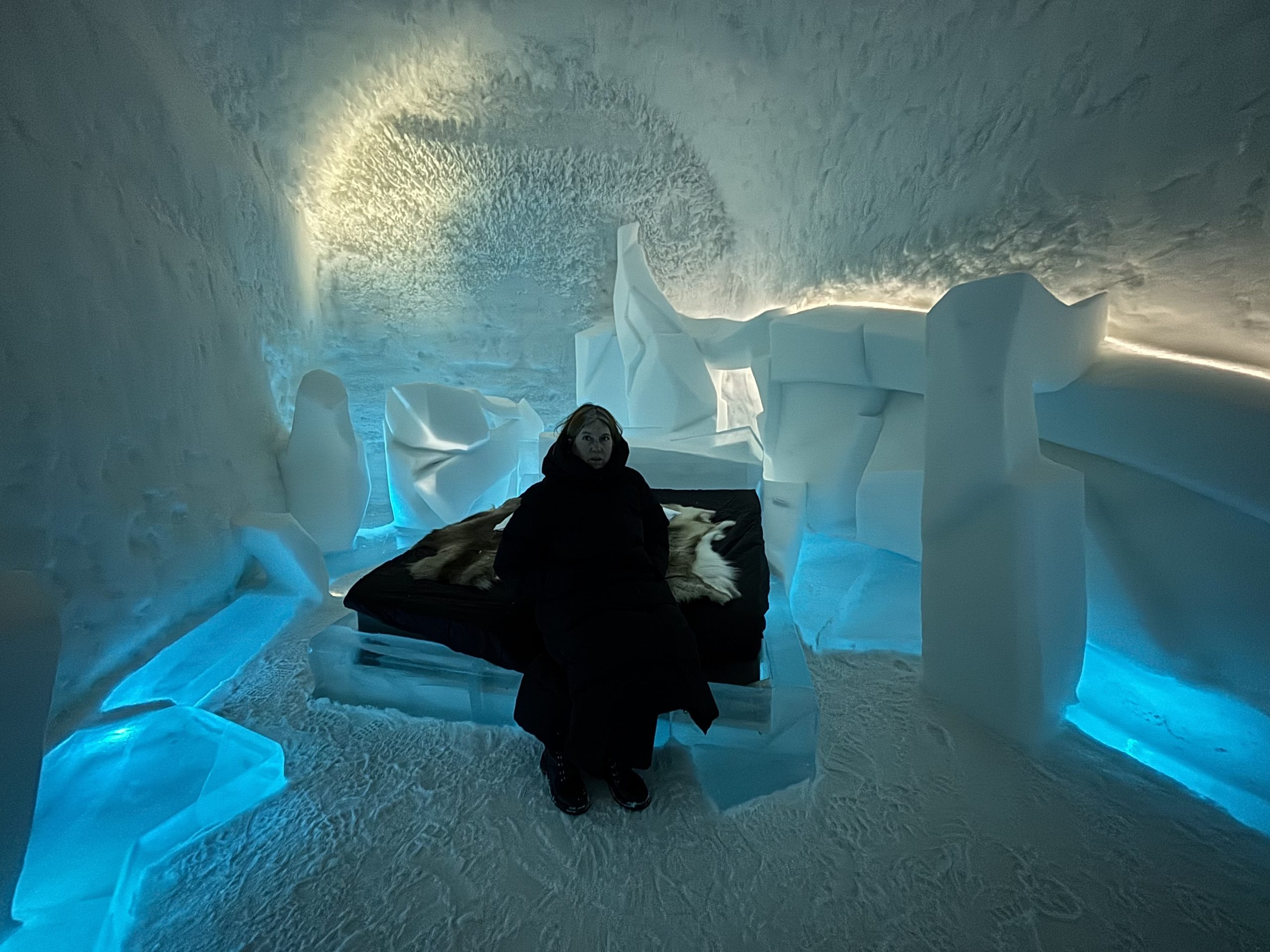Äntligen fick Linda sin 50-årspresent. En övernattning på ishotellet i Jukkasjärvi med besök på Jokkmokks marknad efteråt. När vi kom upp till Luleå på fredagen var det väl ca 12 minusgrader. Det blev varmare i takt med att vi kom längre upp i landet och när vi nådde Jukkasjärvi var det ca -5 grader. Ruhndvandring och förberedelse inför natten innan vi gick och åt en jättegod måltid. Förrätt var rentartar på innanlår med rostade rotfruktschips, svamp och en god sås till. Huvudrätt var fjällröding med potatis och sedan en god efterrätt. På väg till hotell restaurangen fick vi även se Norrsken. Sedan var det dags att krypa ner och sova. Det var inte världens skönaste sömn eftersom det var obekvämt underlag men man frös inte i sovsäcken iallafall. Inne i rummen var det ca -5 till -8 grader. Dagen efter blev det bastu och sedan frukost. Rummen skulle man ha lämnat redan 8.30 så det blev ingen lång sovmorgon precis. Efter att ha checkat ut vid 11 tiden så åkte vi mot Jokkmokk med tankning i Kiruna, genomfart genom Gällivare och sedan lite kraftverk på vägen till Jokkmokk.