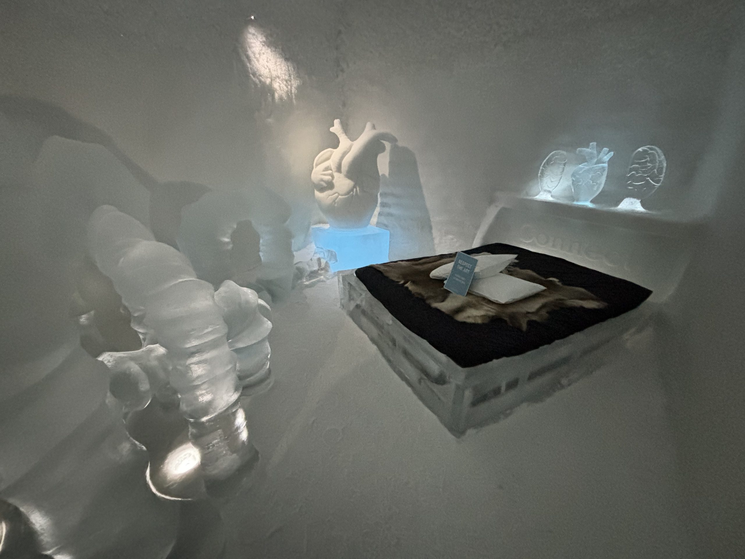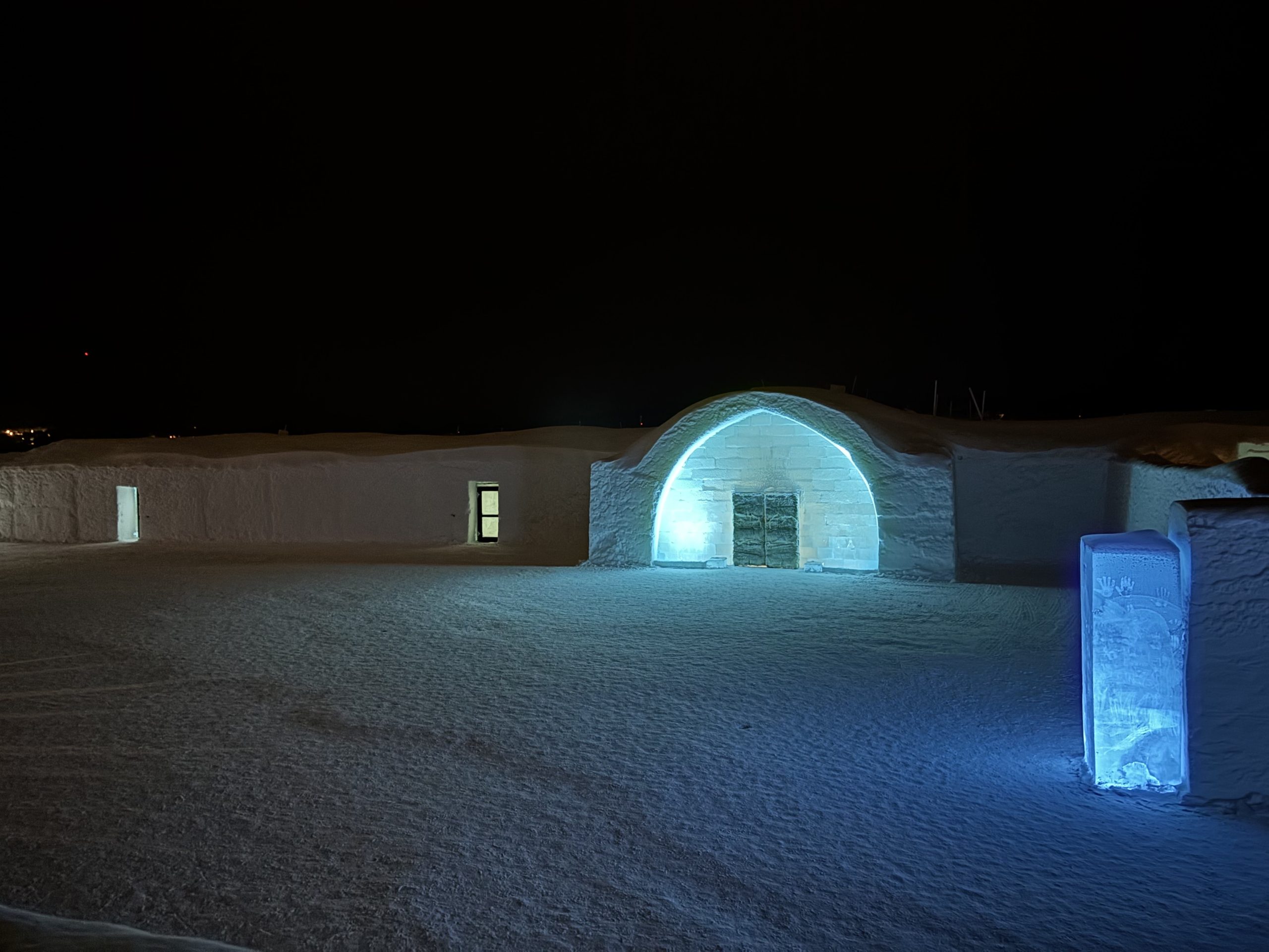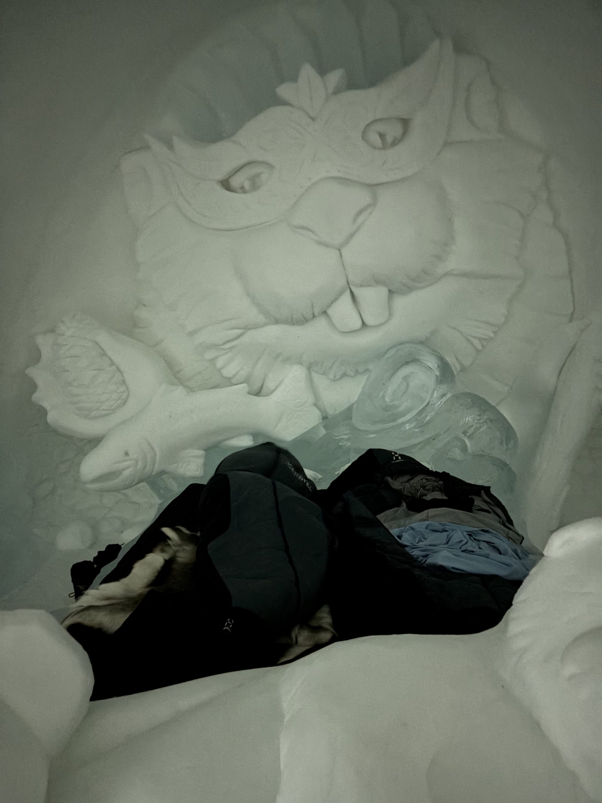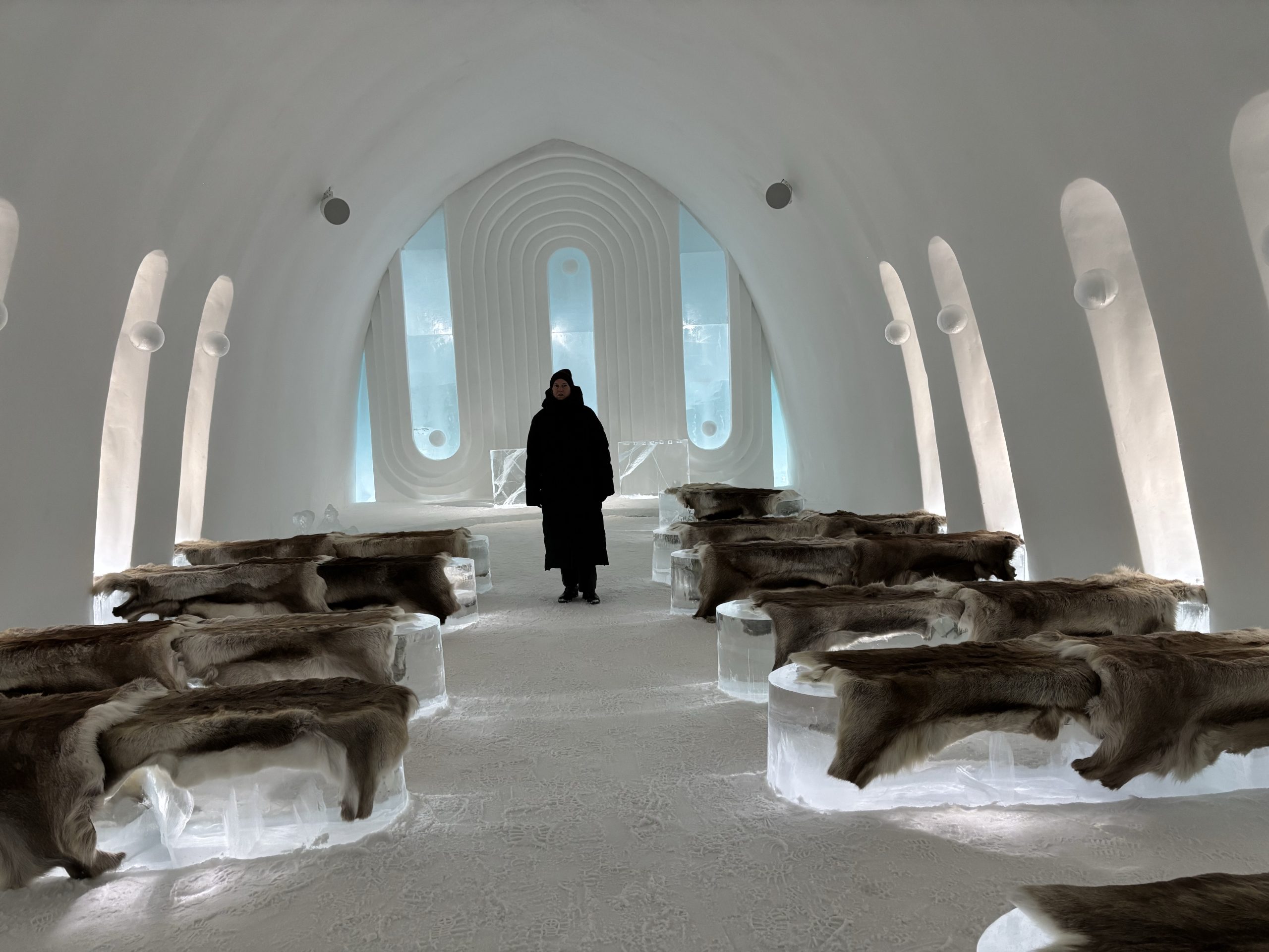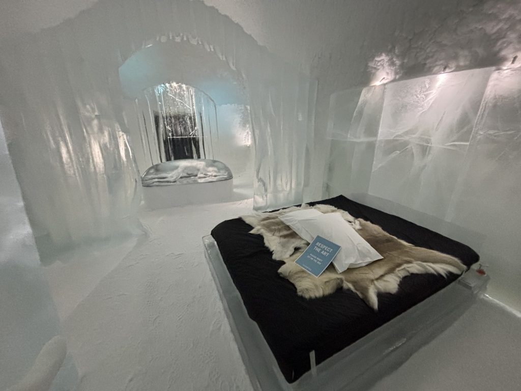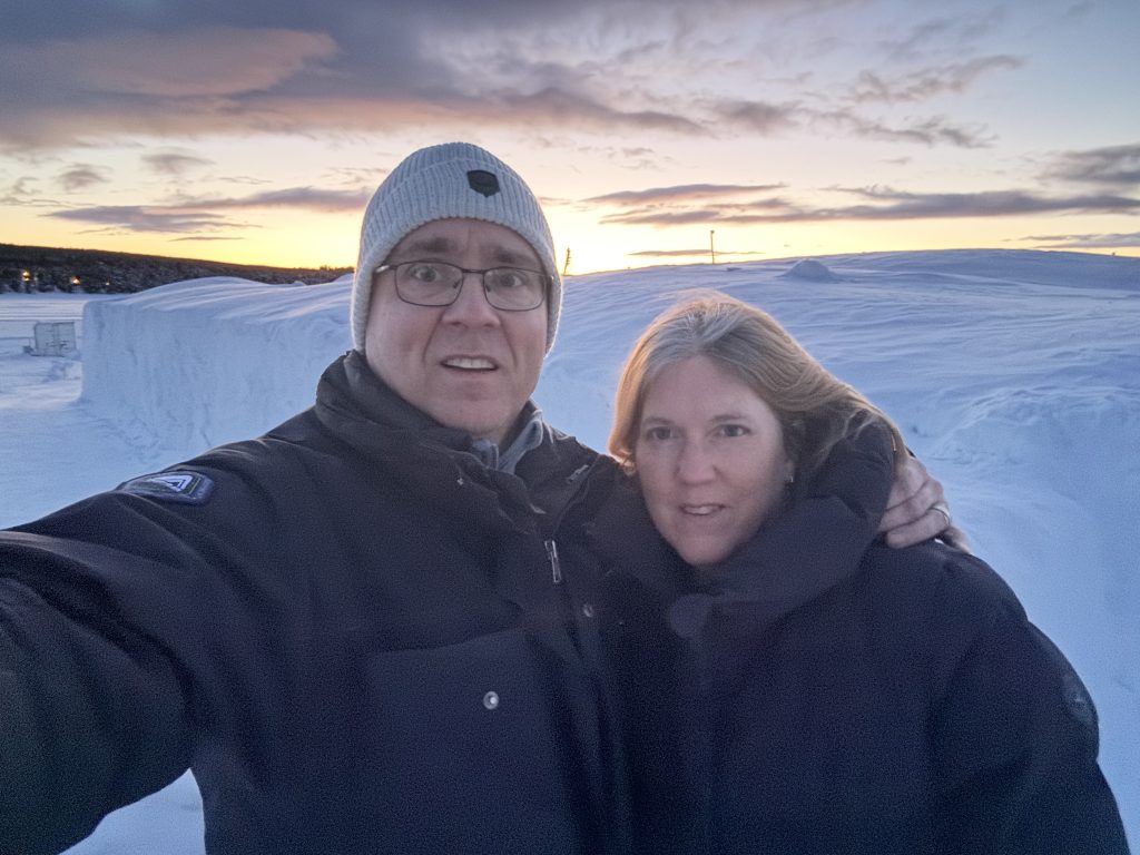 Äntligen fick Linda sin 50-årspresent. En övernattning på ishotellet i Jukkasjärvi med besök på Jokkmokks marknad efteråt. När vi kom upp till Luleå på fredagen var det väl ca 12 minusgrader. Det blev varmare i takt med att vi kom längre upp i landet och när vi nådde Jukkasjärvi var det ca -5 grader. Ruhndvandring och förberedelse inför natten innan vi gick och åt en jättegod måltid. Förrätt var rentartar på innanlår med rostade rotfruktschips, svamp och en god sås till. Huvudrätt var fjällröding med potatis och sedan en god efterrätt. På väg till hotell restaurangen fick vi även se Norrsken. Sedan var det dags att krypa ner och sova. Det var inte världens skönaste sömn eftersom det var obekvämt underlag men man frös inte i sovsäcken iallafall. Inne i rummen var det ca -5 till -8 grader. Dagen efter blev det bastu och sedan frukost. Rummen skulle man ha lämnat redan 8.30 så det blev ingen lång sovmorgon precis. Efter att ha checkat ut vid 11 tiden så åkte vi mot Jokkmokk med tankning i Kiruna, genomfart genom Gällivare och sedan lite kraftverk på vägen till Jokkmokk.