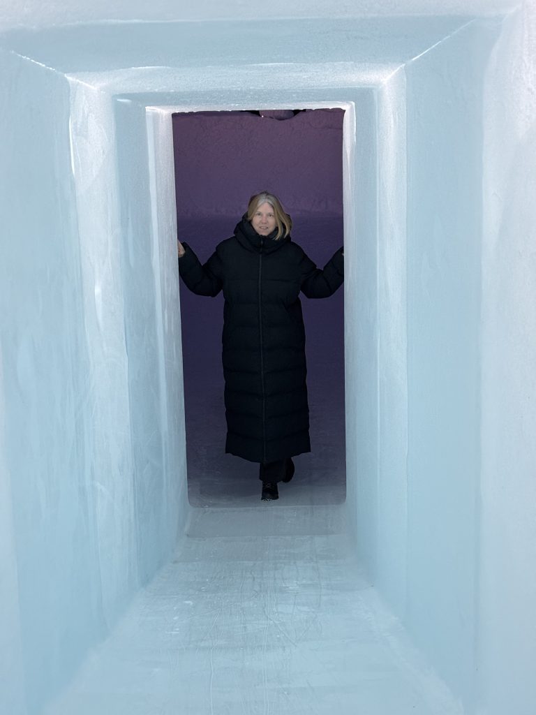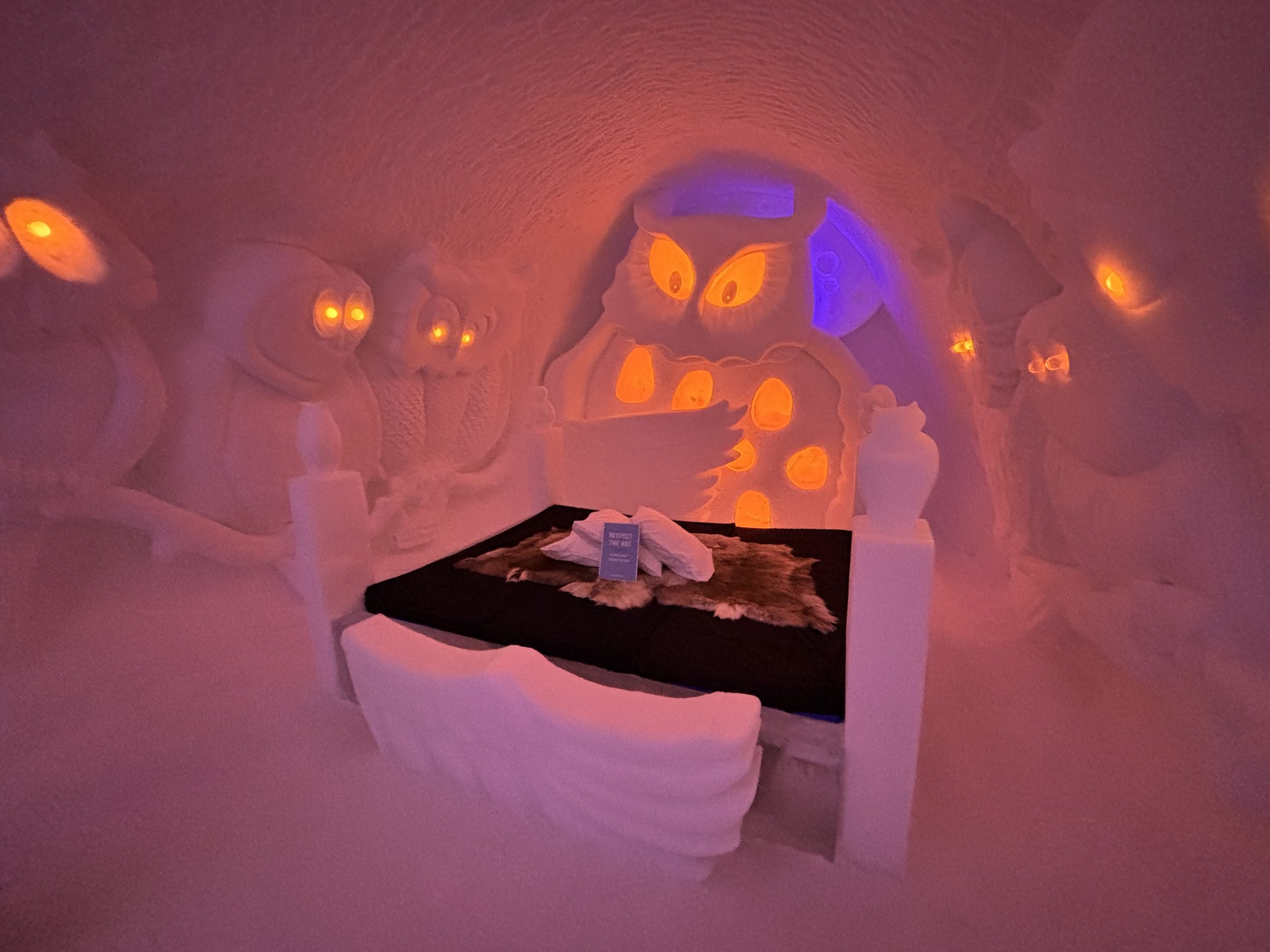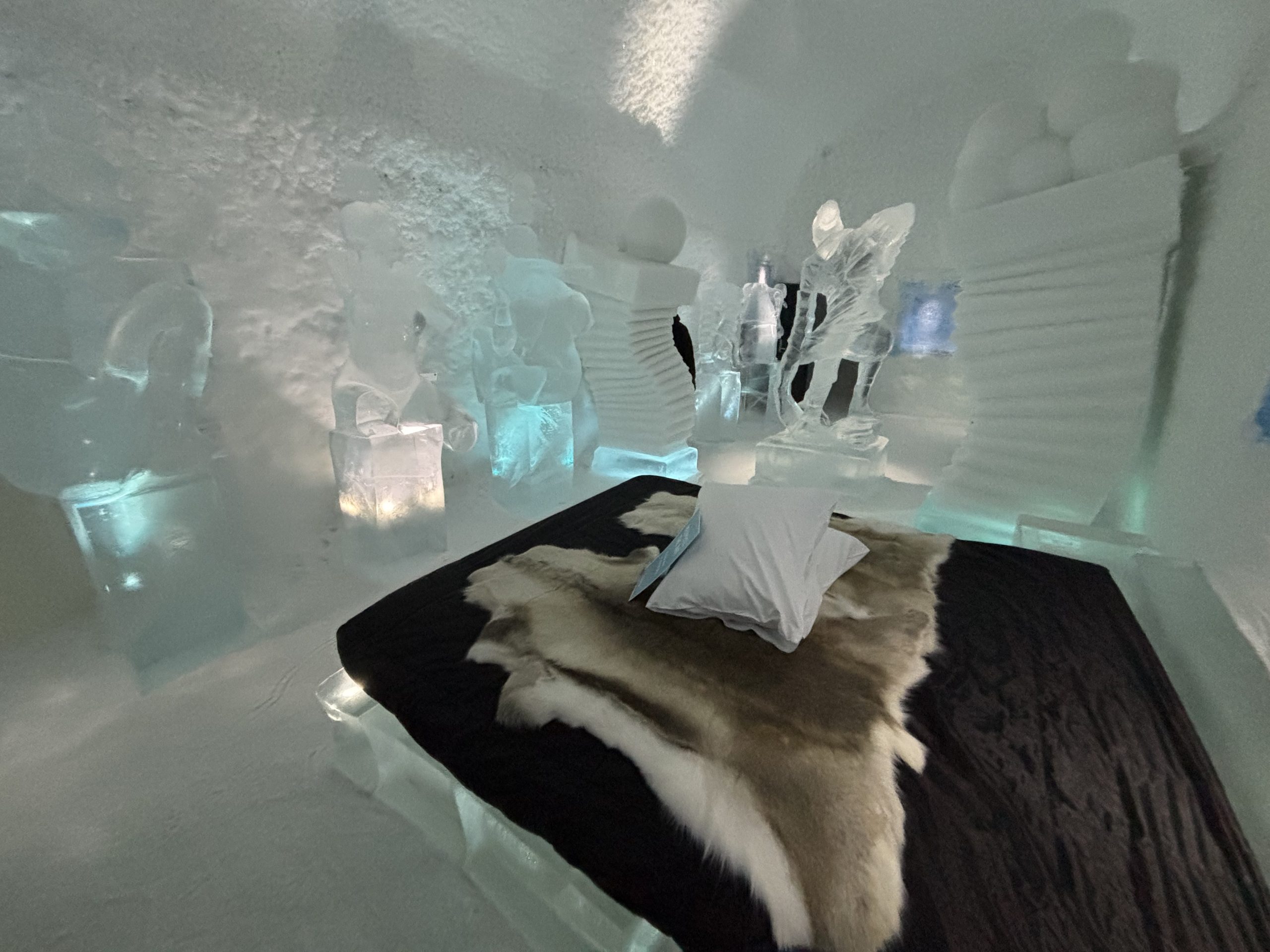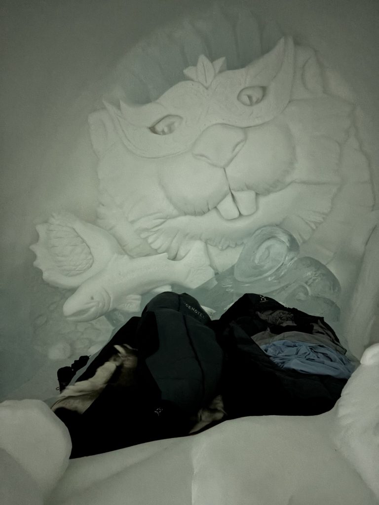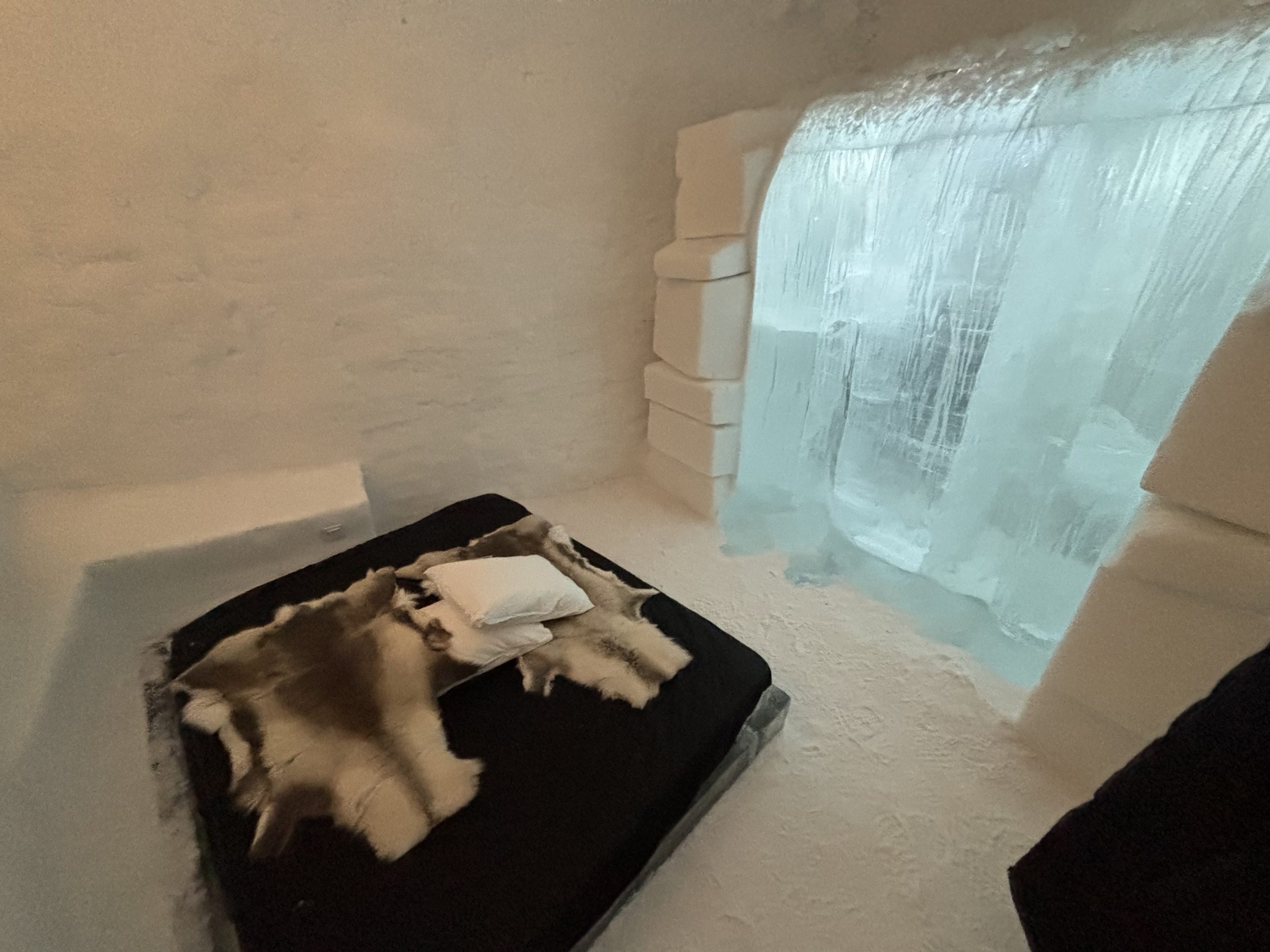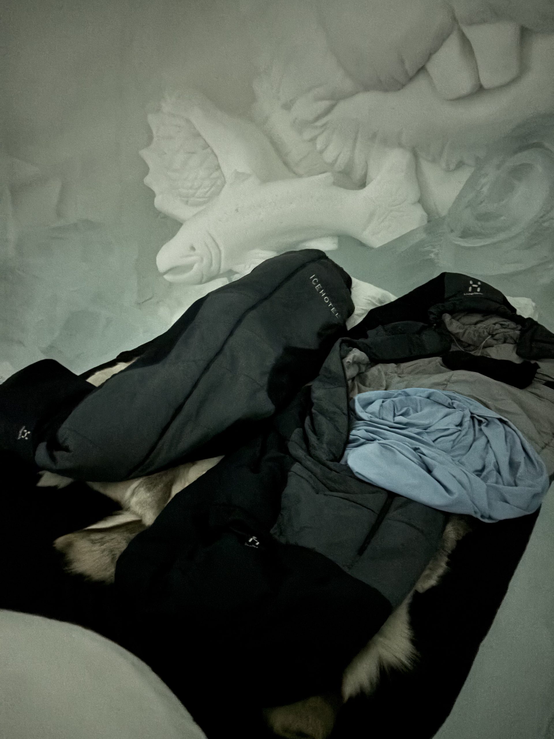 Äntligen fick Linda sin 50-årspresent. En övernattning på ishotellet i Jukkasjärvi med besök på Jokkmokks marknad efteråt. När vi kom upp till Luleå på fredagen var det väl ca 12 minusgrader. Det blev varmare i takt med att vi kom längre upp i landet och när vi nådde Jukkasjärvi var det ca -5 grader. Ruhndvandring och förberedelse inför natten innan vi gick och åt en jättegod måltid. Förrätt var rentartar på innanlår med rostade rotfruktschips, svamp och en god sås till. Huvudrätt var fjällröding med potatis och sedan en god efterrätt. På väg till hotell restaurangen fick vi även se Norrsken. Sedan var det dags att krypa ner och sova. Det var inte världens skönaste sömn eftersom det var obekvämt underlag men man frös inte i sovsäcken iallafall. Inne i rummen var det ca -5 till -8 grader. Dagen efter blev det bastu och sedan frukost. Rummen skulle man ha lämnat redan 8.30 så det blev ingen lång sovmorgon precis. Efter att ha checkat ut vid 11 tiden så åkte vi mot Jokkmokk med tankning i Kiruna, genomfart genom Gällivare och sedan lite kraftverk på vägen till Jokkmokk.
