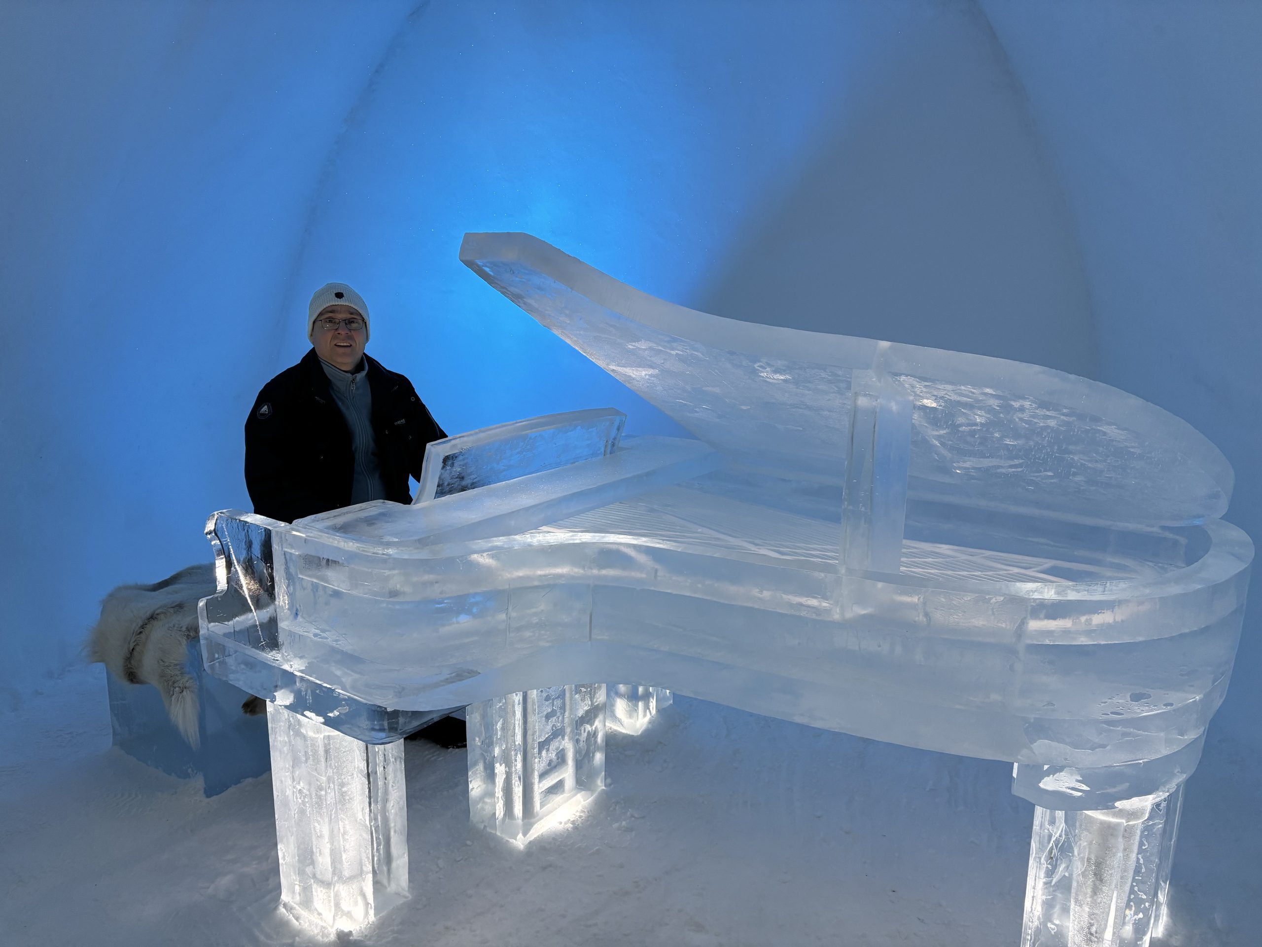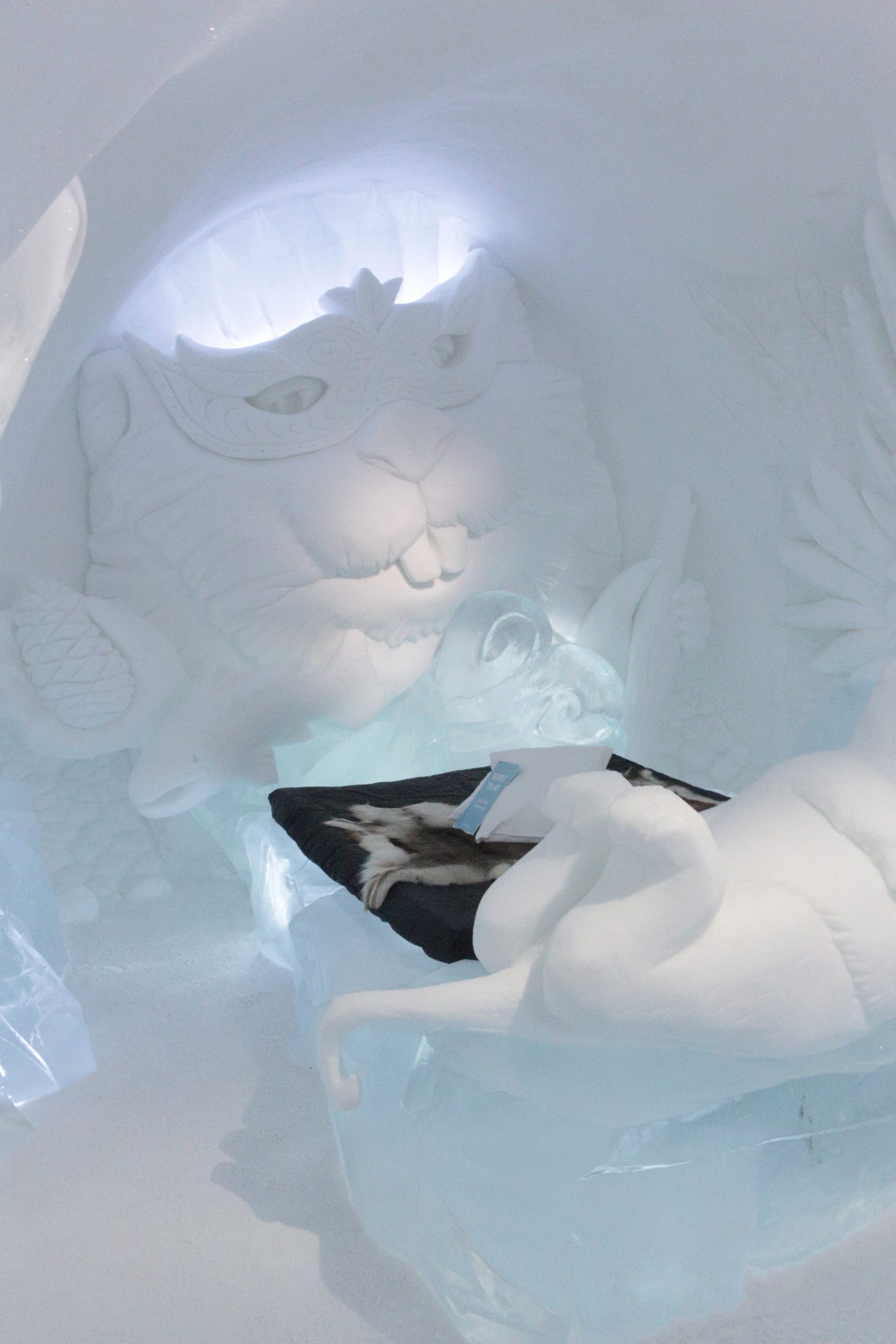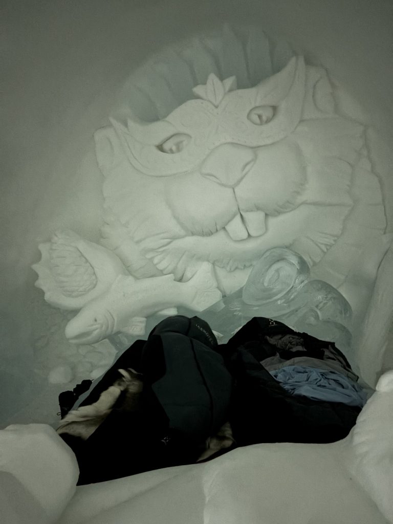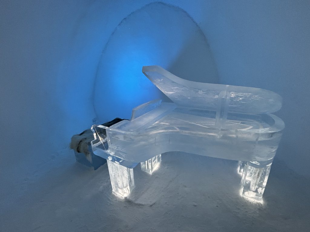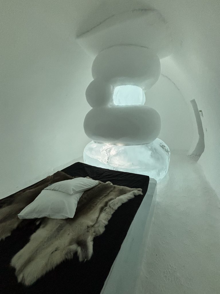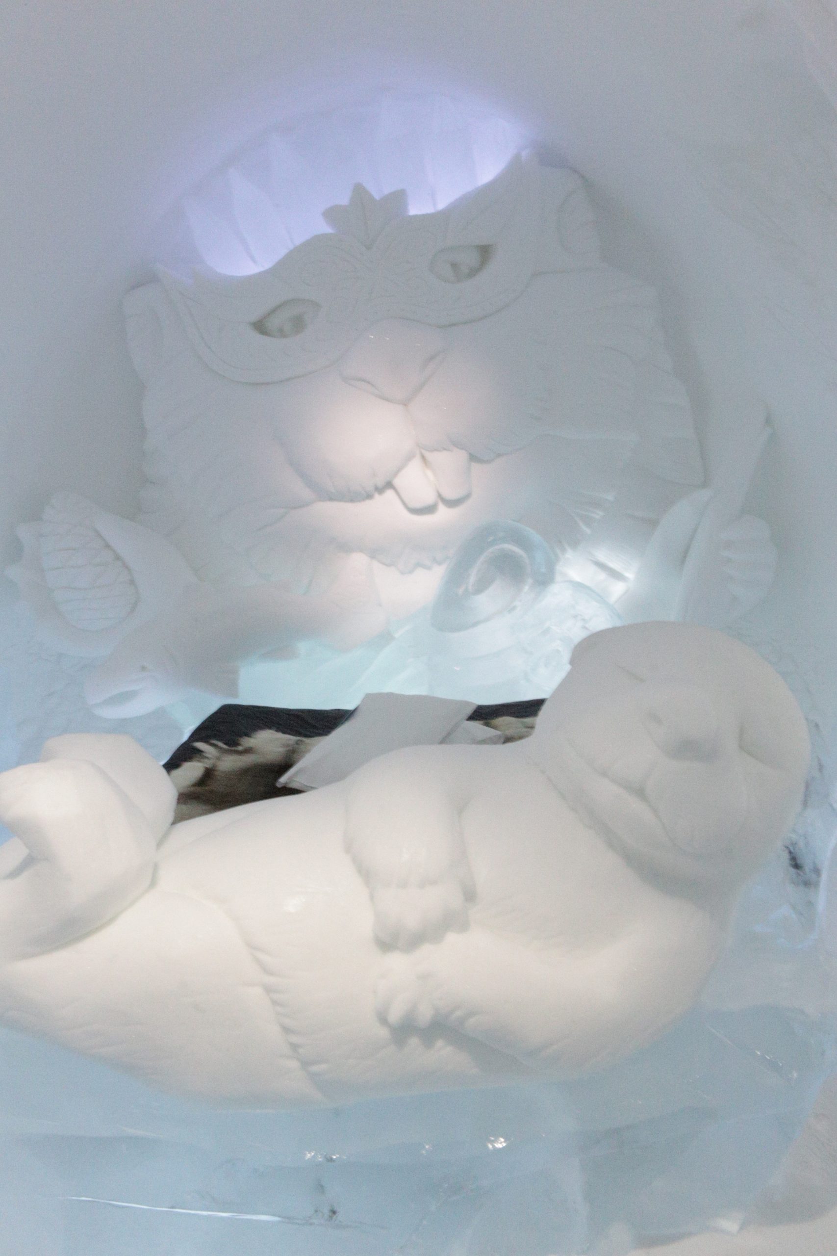 Äntligen fick Linda sin 50-årspresent. En övernattning på ishotellet i Jukkasjärvi med besök på Jokkmokks marknad efteråt. När vi kom upp till Luleå på fredagen var det väl ca 12 minusgrader. Det blev varmare i takt med att vi kom längre upp i landet och när vi nådde Jukkasjärvi var det ca -5 grader. Ruhndvandring och förberedelse inför natten innan vi gick och åt en jättegod måltid. Förrätt var rentartar på innanlår med rostade rotfruktschips, svamp och en god sås till. Huvudrätt var fjällröding med potatis och sedan en god efterrätt. På väg till hotell restaurangen fick vi även se Norrsken. Sedan var det dags att krypa ner och sova. Det var inte världens skönaste sömn eftersom det var obekvämt underlag men man frös inte i sovsäcken iallafall. Inne i rummen var det ca -5 till -8 grader. Dagen efter blev det bastu och sedan frukost. Rummen skulle man ha lämnat redan 8.30 så det blev ingen lång sovmorgon precis. Efter att ha checkat ut vid 11 tiden så åkte vi mot Jokkmokk med tankning i Kiruna, genomfart genom Gällivare och sedan lite kraftverk på vägen till Jokkmokk.
