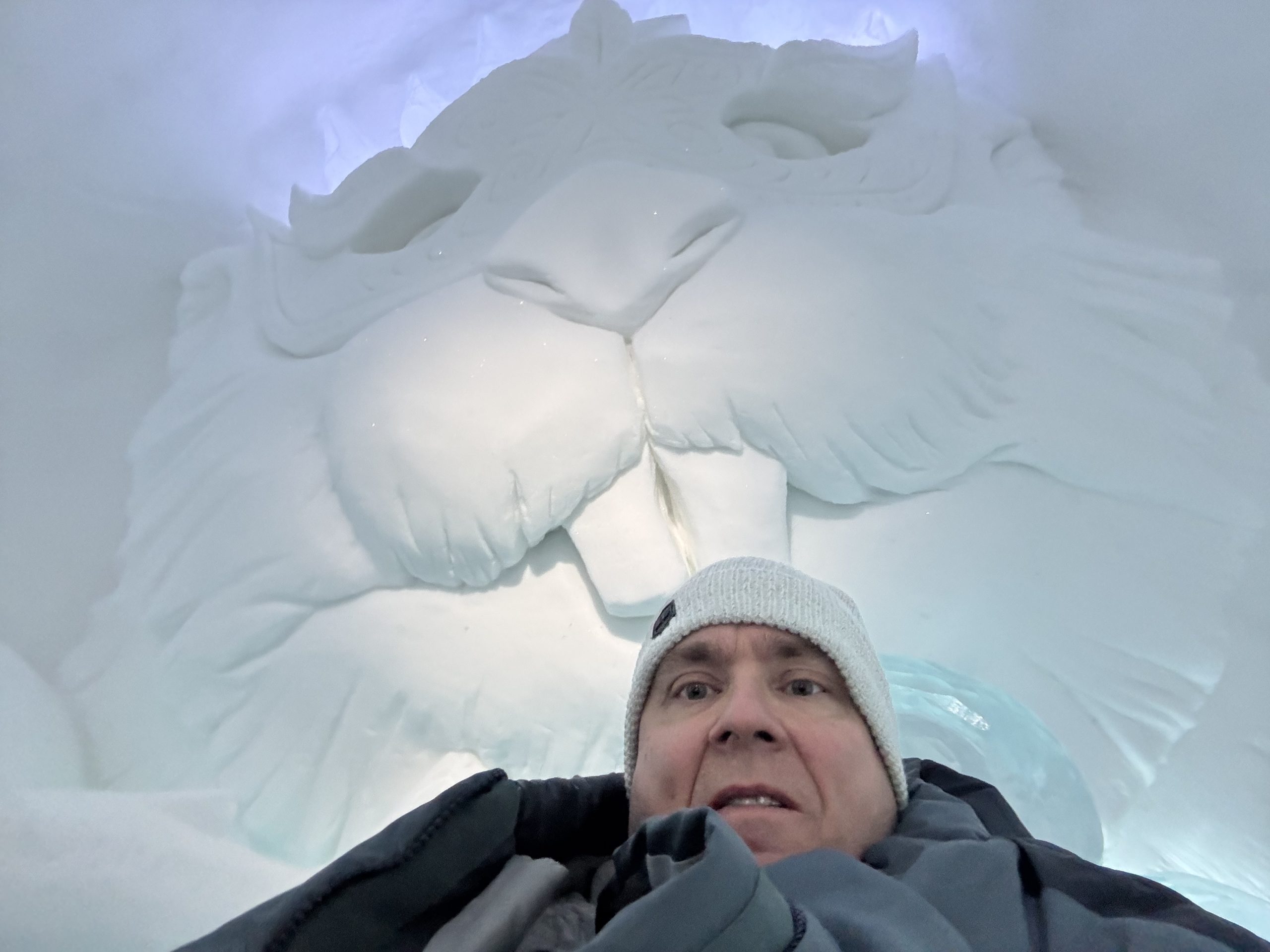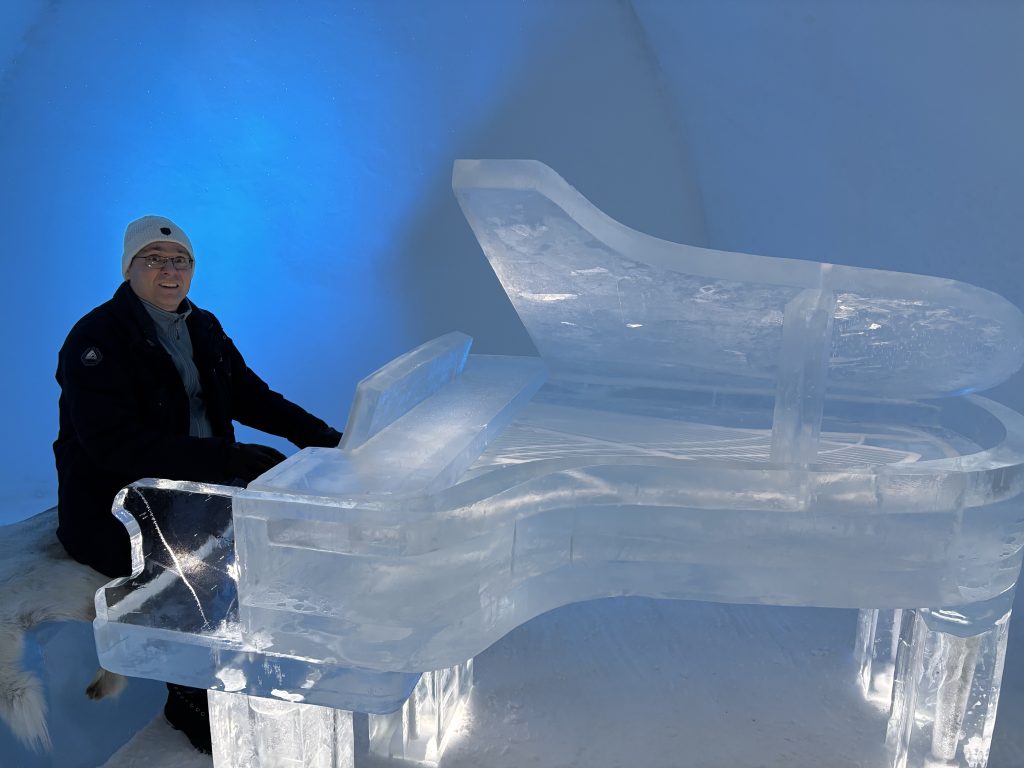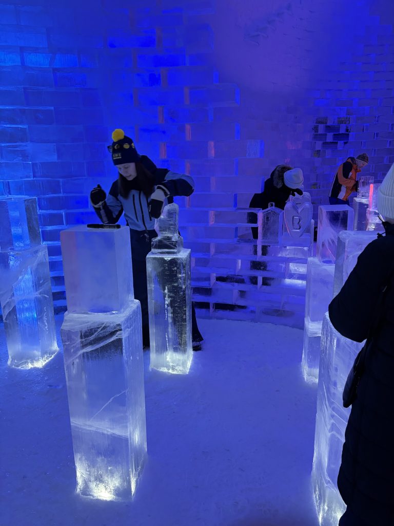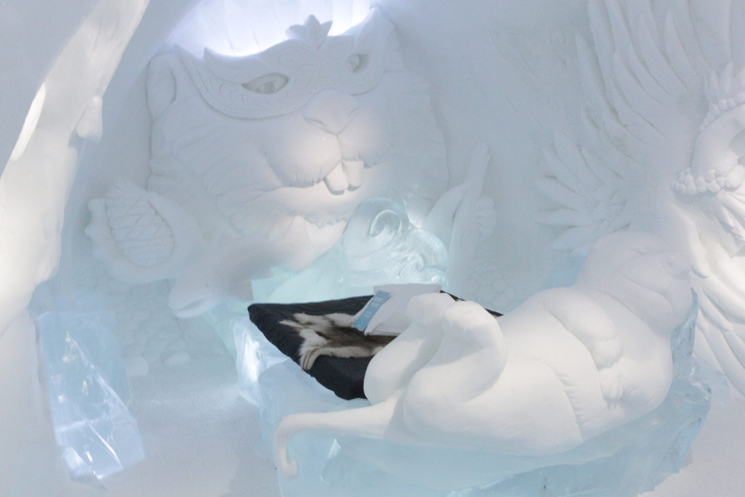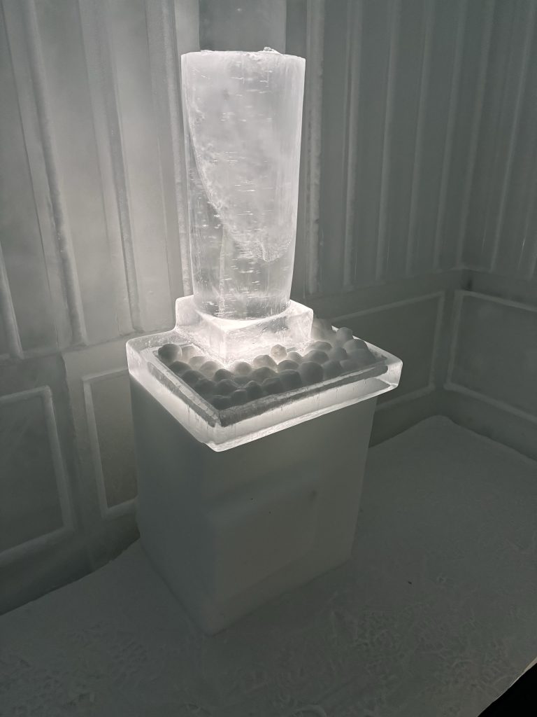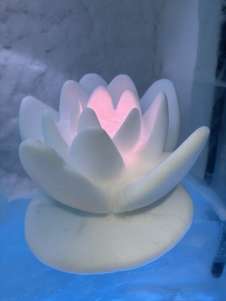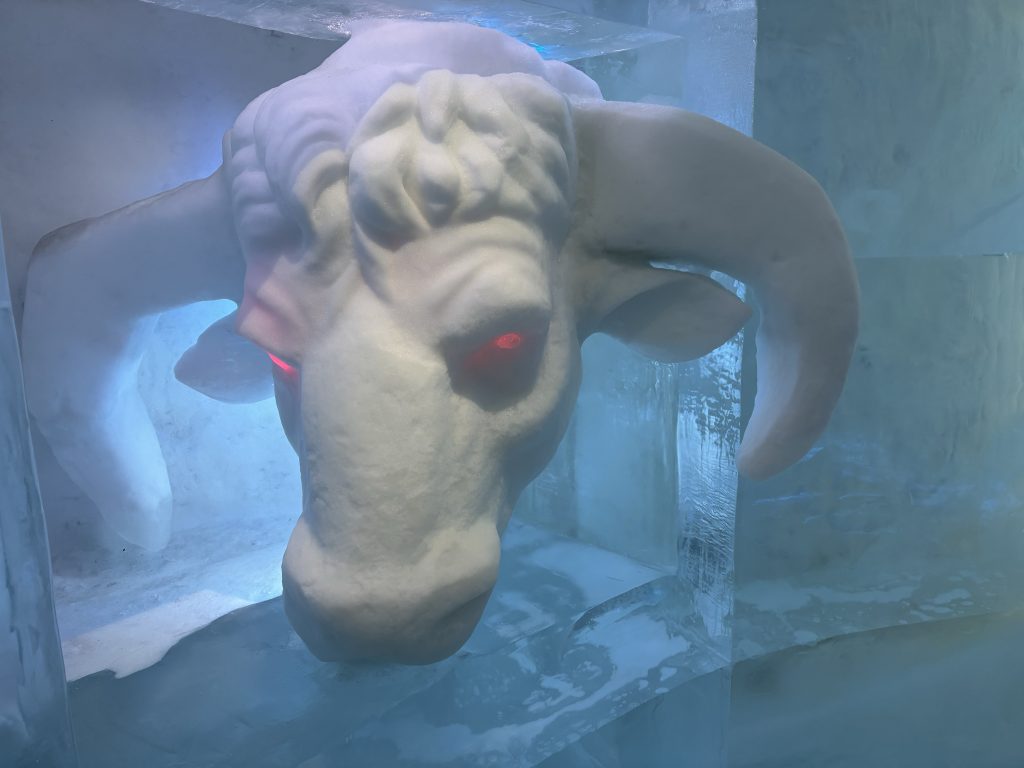 Äntligen fick Linda sin 50-årspresent. En övernattning på ishotellet i Jukkasjärvi med besök på Jokkmokks marknad efteråt. När vi kom upp till Luleå på fredagen var det väl ca 12 minusgrader. Det blev varmare i takt med att vi kom längre upp i landet och när vi nådde Jukkasjärvi var det ca -5 grader. Ruhndvandring och förberedelse inför natten innan vi gick och åt en jättegod måltid. Förrätt var rentartar på innanlår med rostade rotfruktschips, svamp och en god sås till. Huvudrätt var fjällröding med potatis och sedan en god efterrätt. På väg till hotell restaurangen fick vi även se Norrsken. Sedan var det dags att krypa ner och sova. Det var inte världens skönaste sömn eftersom det var obekvämt underlag men man frös inte i sovsäcken iallafall. Inne i rummen var det ca -5 till -8 grader. Dagen efter blev det bastu och sedan frukost. Rummen skulle man ha lämnat redan 8.30 så det blev ingen lång sovmorgon precis. Efter att ha checkat ut vid 11 tiden så åkte vi mot Jokkmokk med tankning i Kiruna, genomfart genom Gällivare och sedan lite kraftverk på vägen till Jokkmokk.