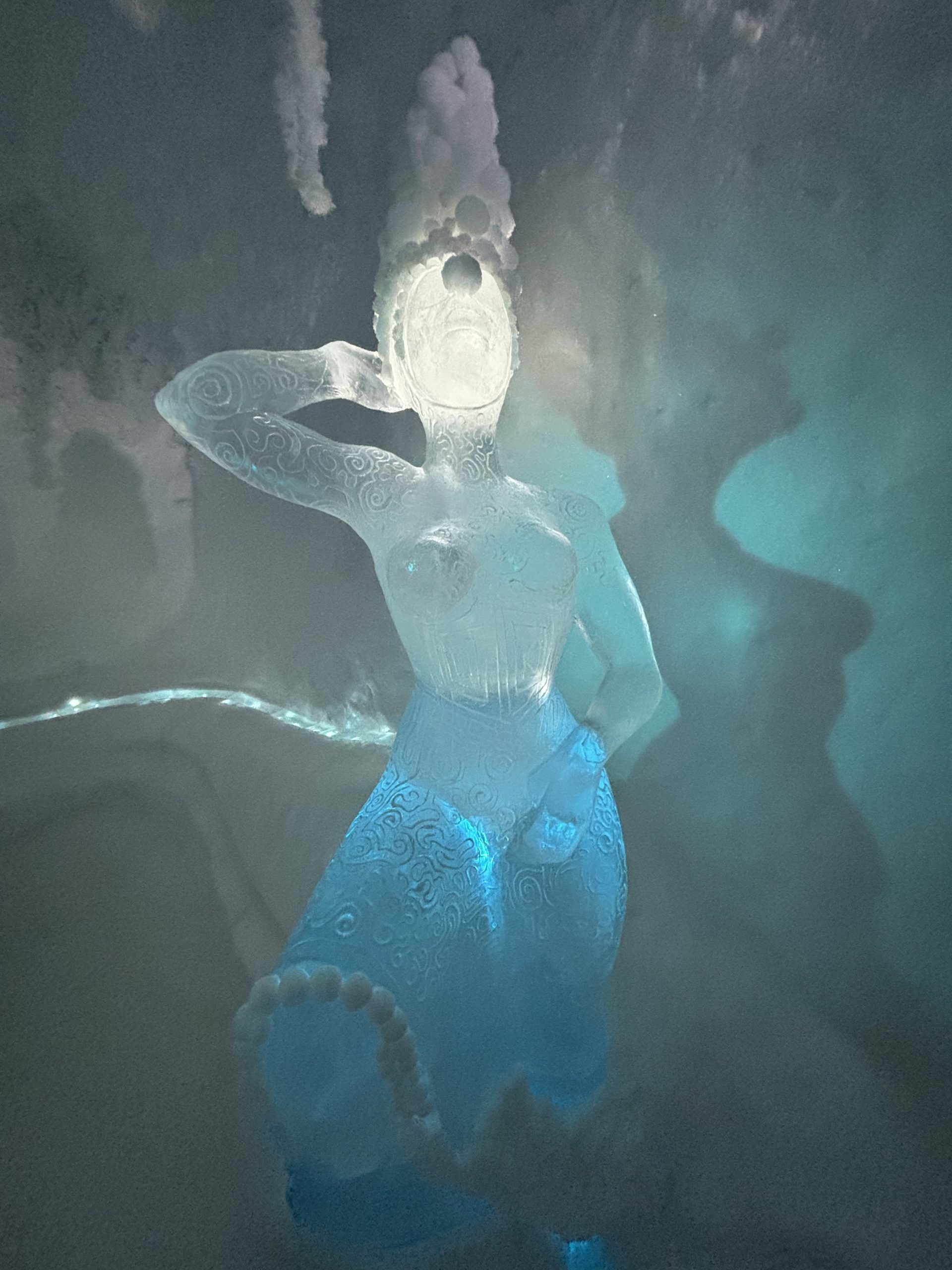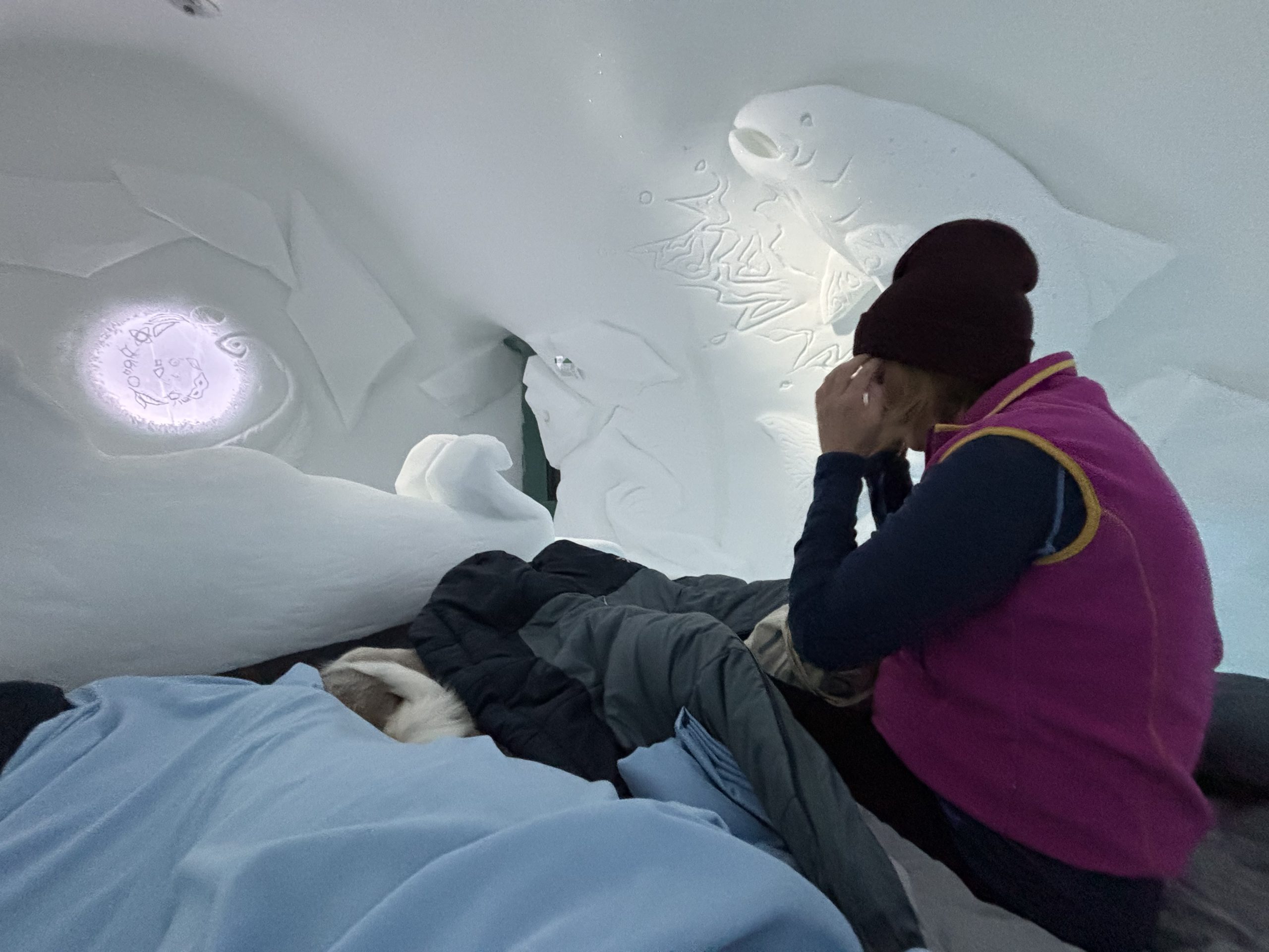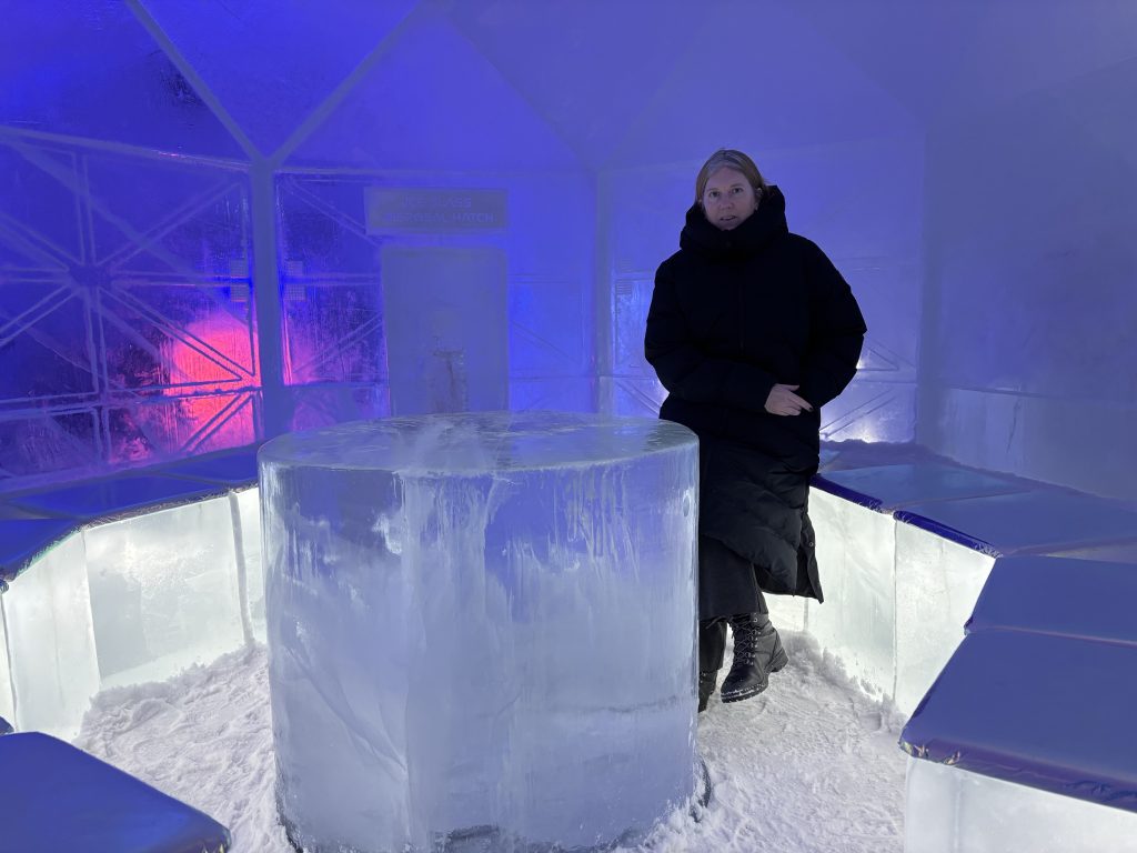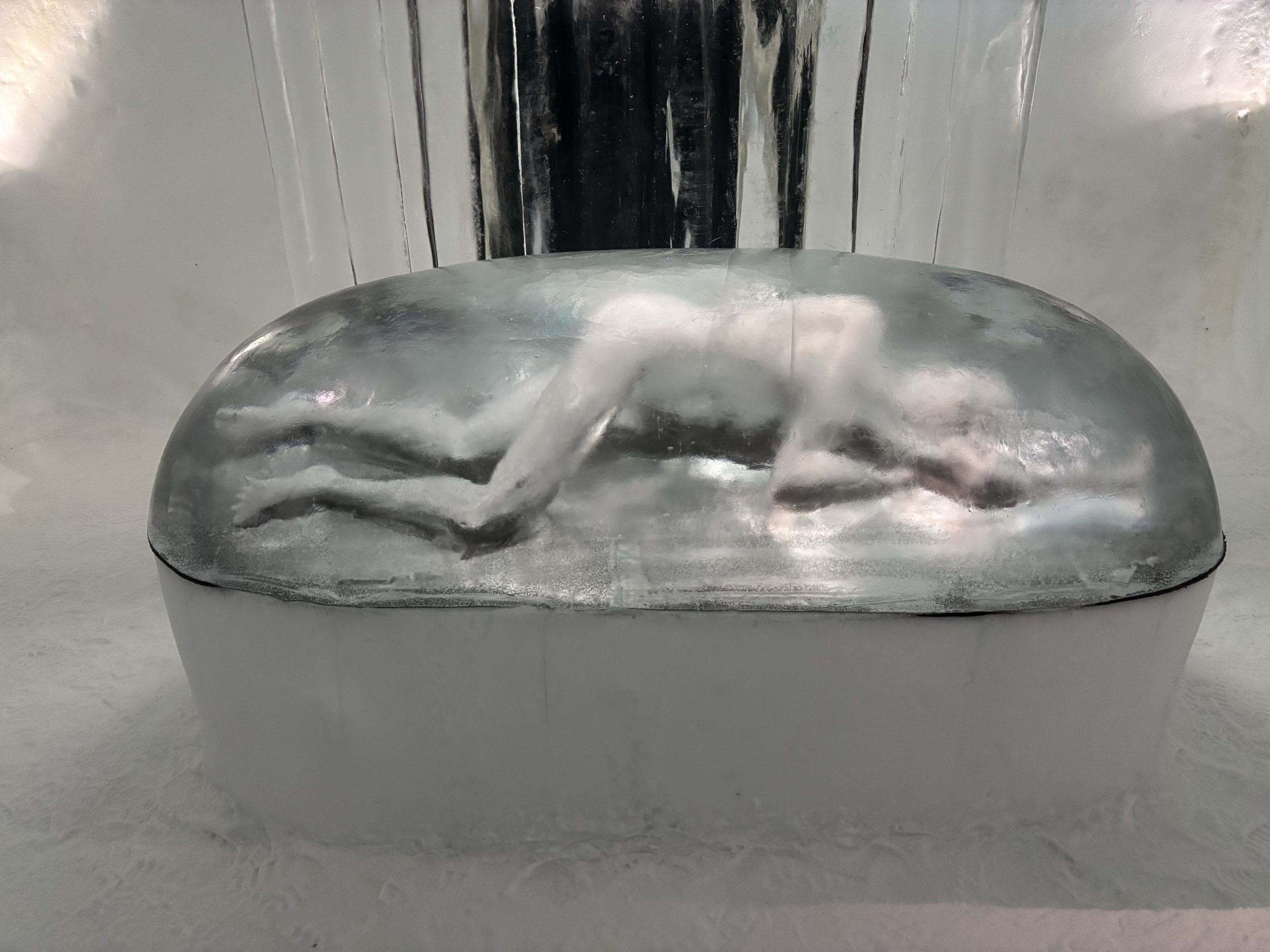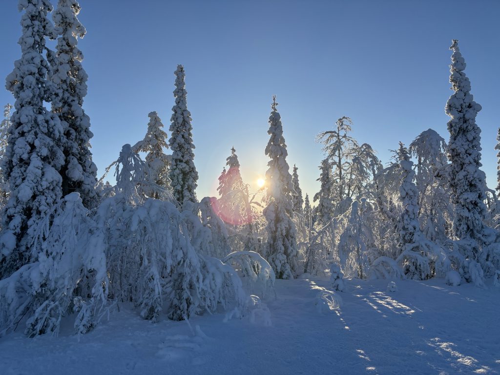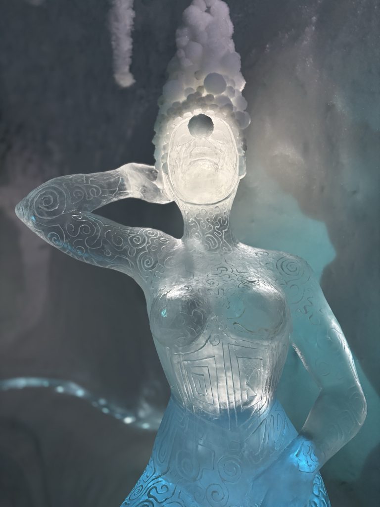 Äntligen fick Linda sin 50-årspresent. En övernattning på ishotellet i Jukkasjärvi med besök på Jokkmokks marknad efteråt. När vi kom upp till Luleå på fredagen var det väl ca 12 minusgrader. Det blev varmare i takt med att vi kom längre upp i landet och när vi nådde Jukkasjärvi var det ca -5 grader. Ruhndvandring och förberedelse inför natten innan vi gick och åt en jättegod måltid. Förrätt var rentartar på innanlår med rostade rotfruktschips, svamp och en god sås till. Huvudrätt var fjällröding med potatis och sedan en god efterrätt. På väg till hotell restaurangen fick vi även se Norrsken. Sedan var det dags att krypa ner och sova. Det var inte världens skönaste sömn eftersom det var obekvämt underlag men man frös inte i sovsäcken iallafall. Inne i rummen var det ca -5 till -8 grader. Dagen efter blev det bastu och sedan frukost. Rummen skulle man ha lämnat redan 8.30 så det blev ingen lång sovmorgon precis. Efter att ha checkat ut vid 11 tiden så åkte vi mot Jokkmokk med tankning i Kiruna, genomfart genom Gällivare och sedan lite kraftverk på vägen till Jokkmokk.