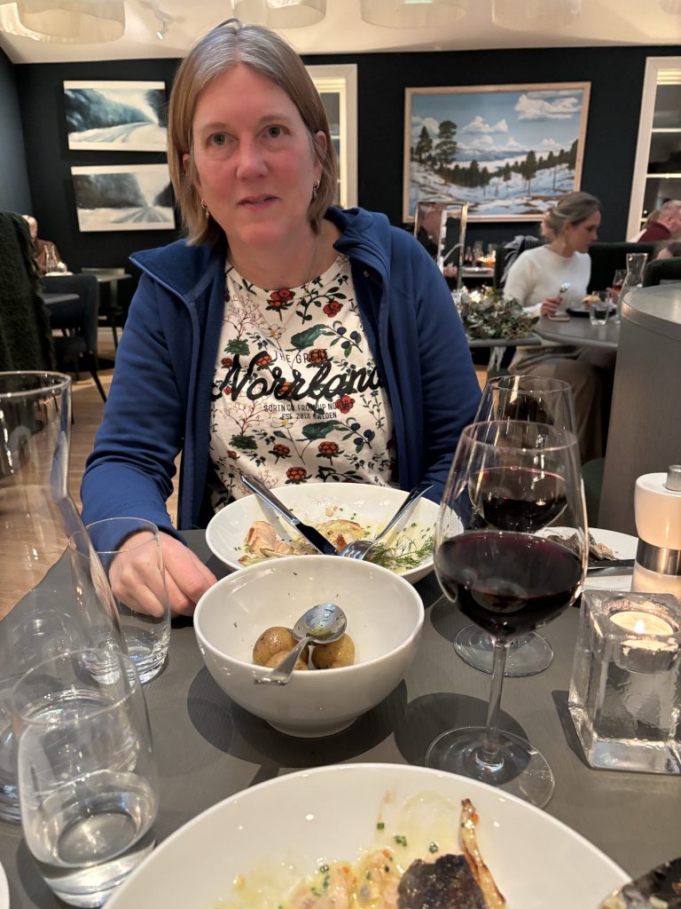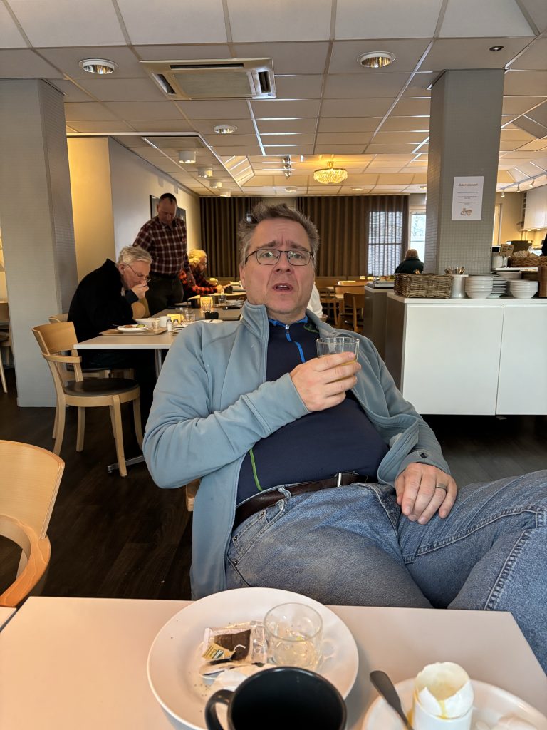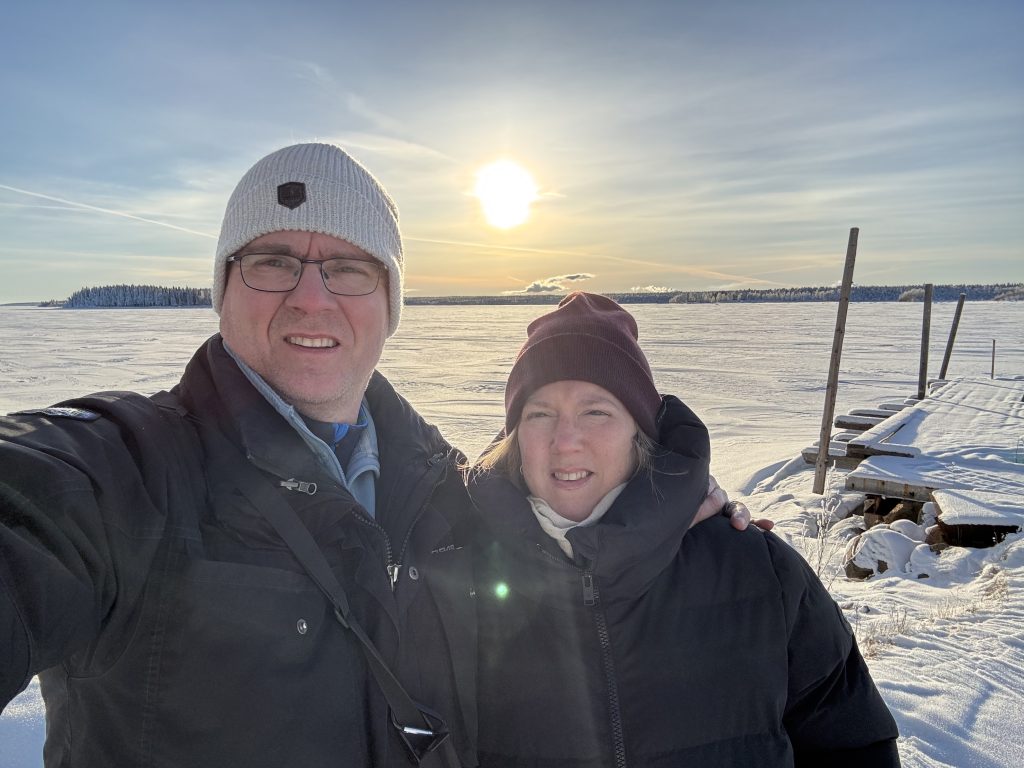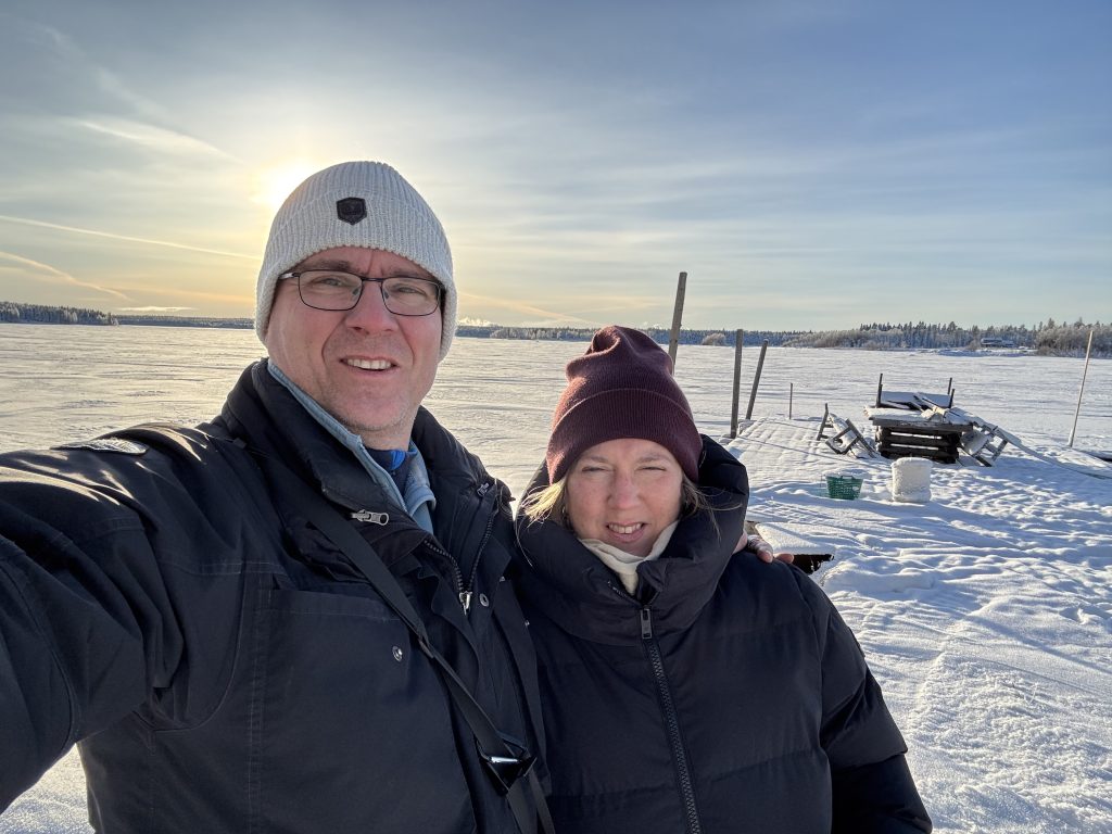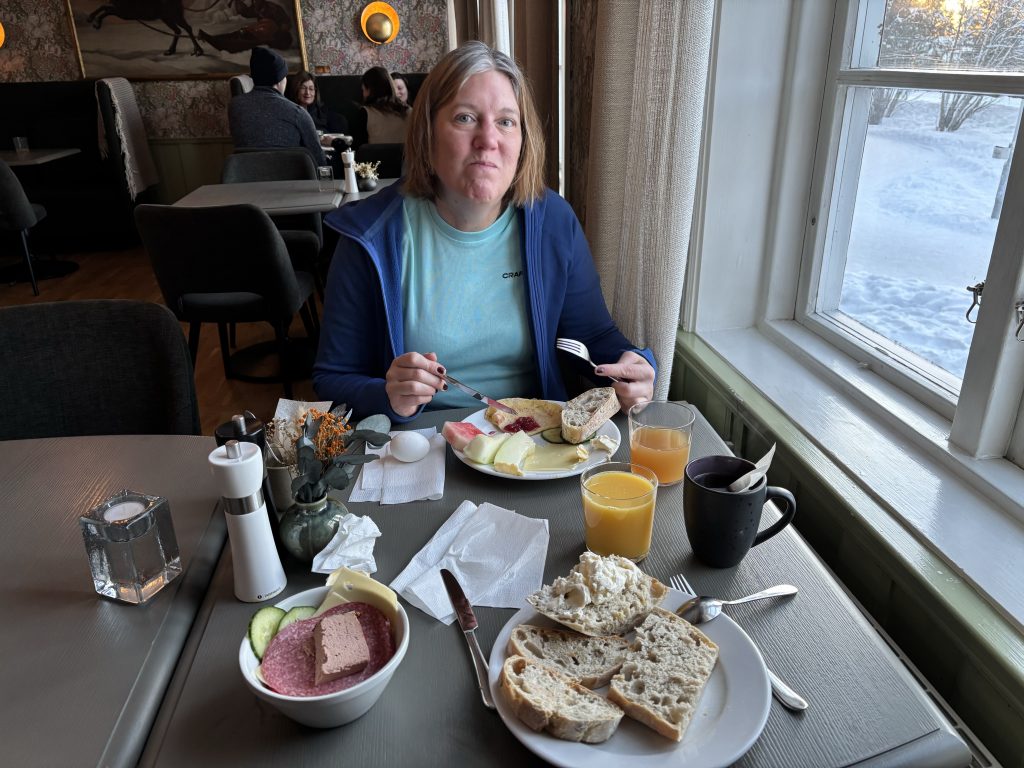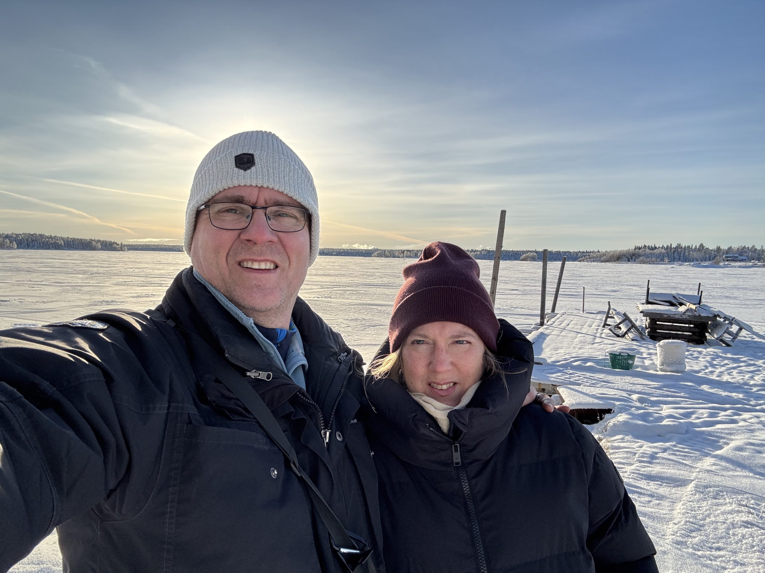I Jokkmokk stog Urban och sålde tillsammans med Rose-Marie och Gunnar. Sedan åkte vi ner till Luleå och tog in på Arctic hotell bredvid Järnvägsstationen i Luleå och kunde äntligen sova ut en ordentlig nattsömn. Dagen efter var vi förbi till Bensbyn och hälsade på, en sväng ut till Björkön och sedan åkte vi och åt middag hos Rose-Marie. Köttsoppa för Kristoffer och Sushi för Linda. Sedan blev det flyg hem på söndagskvällen och till slut kunde vi krypa ner i våra vanliga sängar hemma i Stockholm.