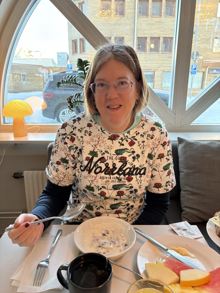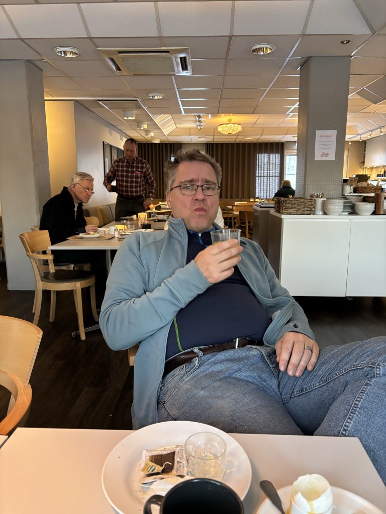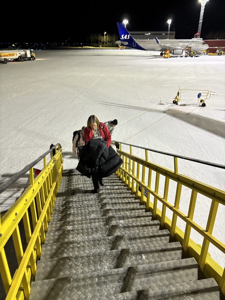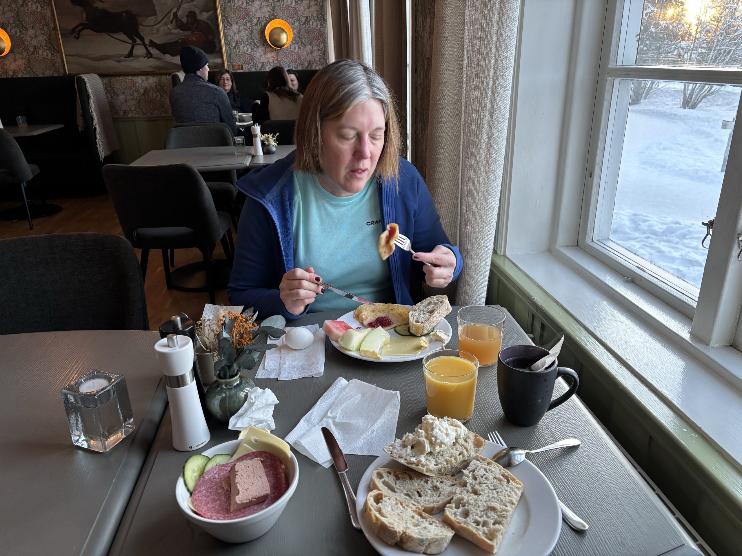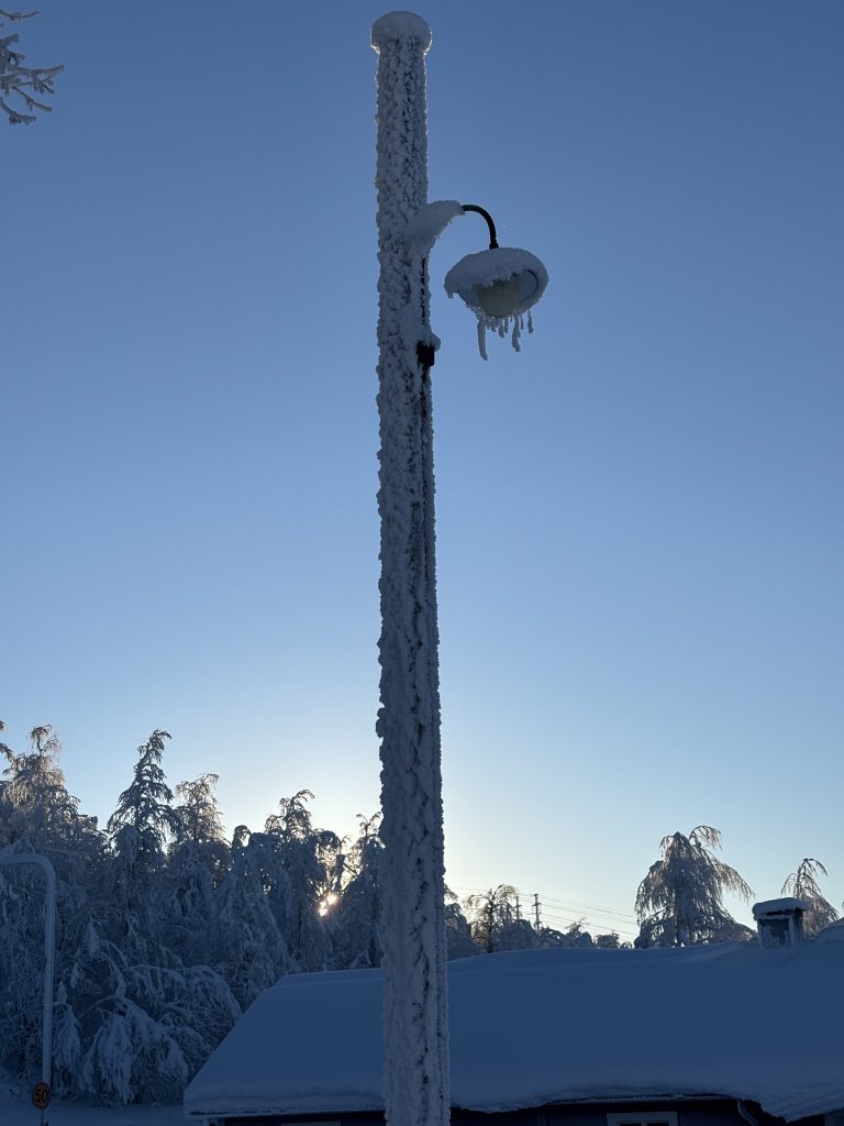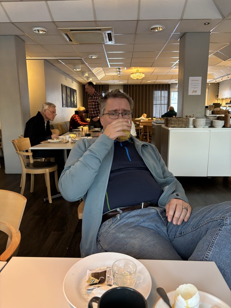 I Jokkmokk stog Urban och sålde tillsammans med Rose-Marie och Gunnar. Sedan åkte vi ner till Luleå och tog in på Arctic hotell bredvid Järnvägsstationen i Luleå och kunde äntligen sova ut en ordentlig nattsömn. Dagen efter var vi förbi till Bensbyn och hälsade på, en sväng ut till Björkön och sedan åkte vi och åt middag hos Rose-Marie. Köttsoppa för Kristoffer och Sushi för Linda. Sedan blev det flyg hem på söndagskvällen och till slut kunde vi krypa ner i våra vanliga sängar hemma i Stockholm.