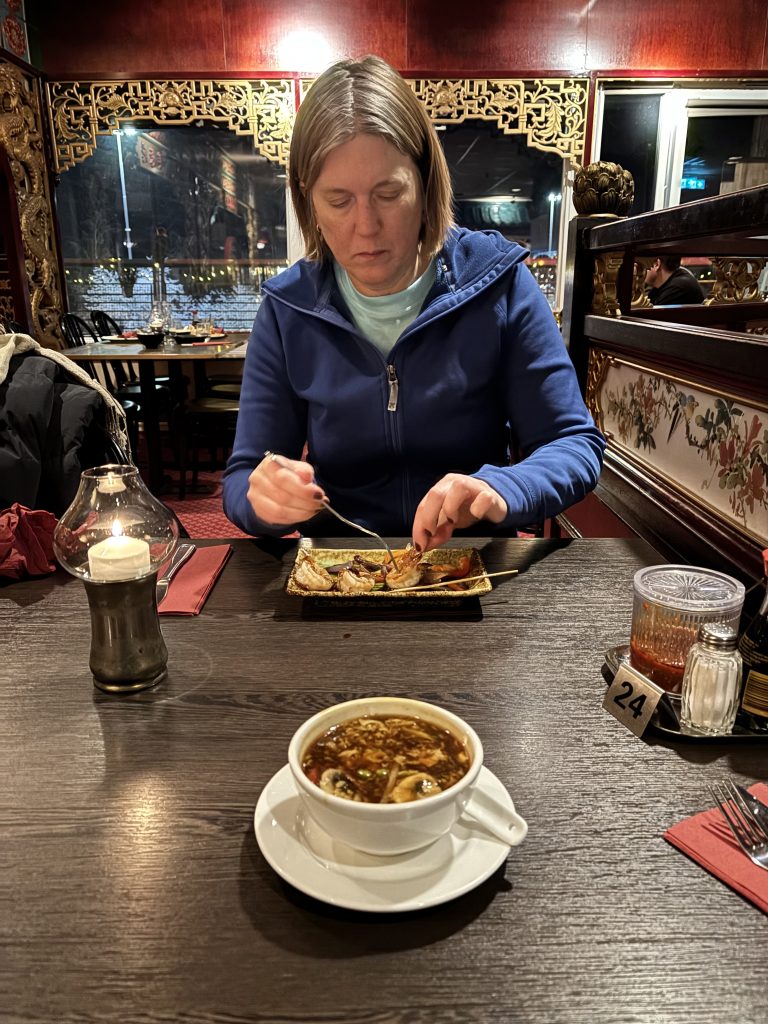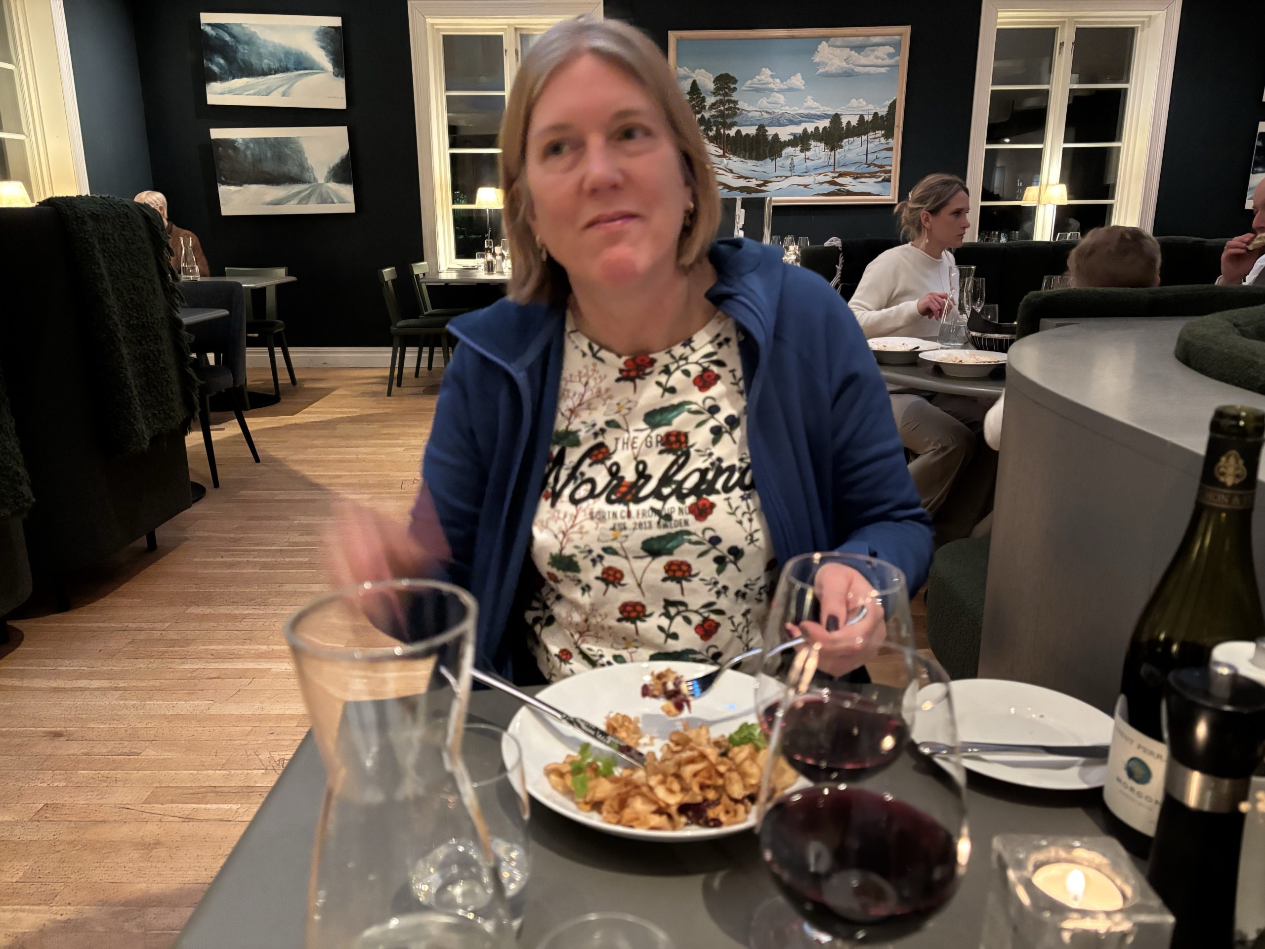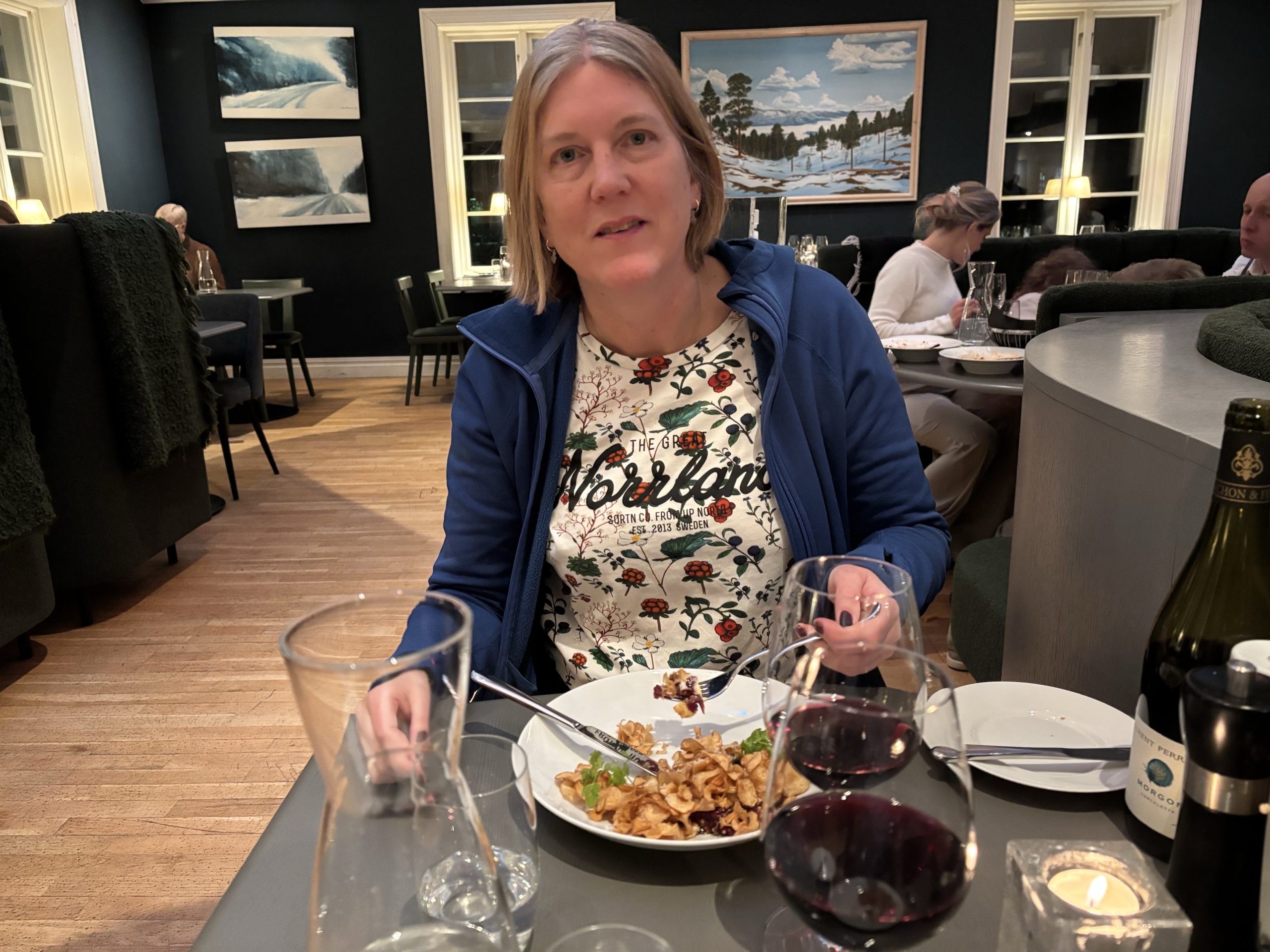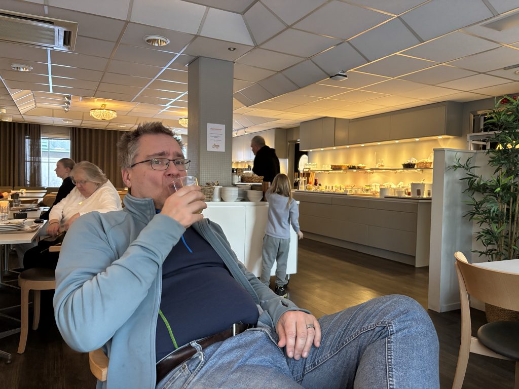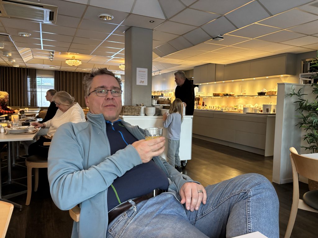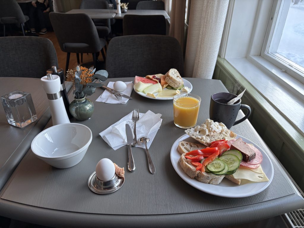 I Jokkmokk stog Urban och sålde tillsammans med Rose-Marie och Gunnar. Sedan åkte vi ner till Luleå och tog in på Arctic hotell bredvid Järnvägsstationen i Luleå och kunde äntligen sova ut en ordentlig nattsömn. Dagen efter var vi förbi till Bensbyn och hälsade på, en sväng ut till Björkön och sedan åkte vi och åt middag hos Rose-Marie. Köttsoppa för Kristoffer och Sushi för Linda. Sedan blev det flyg hem på söndagskvällen och till slut kunde vi krypa ner i våra vanliga sängar hemma i Stockholm.